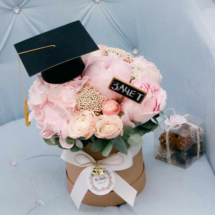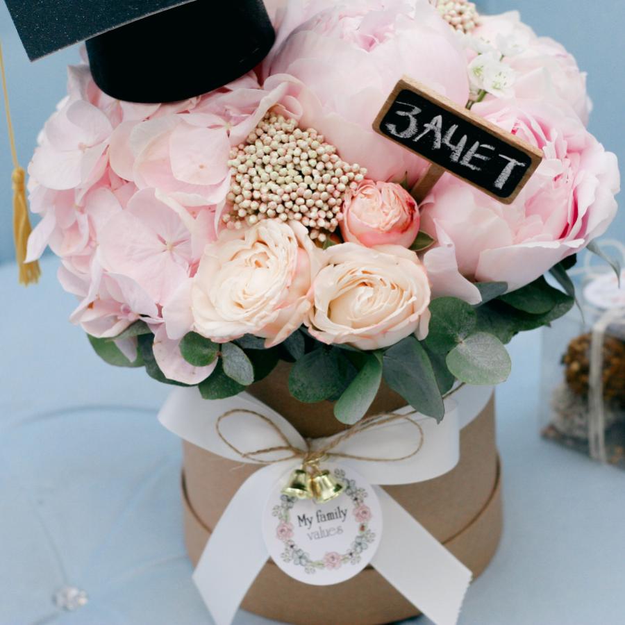 | пион Сара Бернар, кустовая пионовидная роза, гортензия, озатамнус, эвкалипт; | |