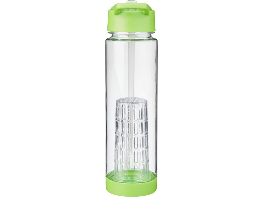 Оригинальная бутылка для воды. Благодаря отделению для фруктов есть возможность создания лимонада на свой вкус. Придется по вкусу любителям натуральных продуктов и здорового образа жизни. Легко разбирается. На пластиковый корпус возможно нанесение тампопечати. Объем – 740 мл.