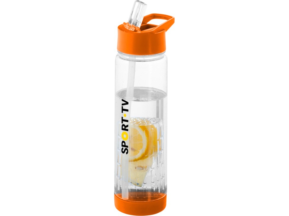 Оригинальная бутылка для воды. Благодаря отделению для фруктов есть возможность создания лимонада на свой вкус. Придется по вкусу любителям натуральных продуктов и здорового образа жизни. Легко разбирается. На пластиковый корпус возможно нанесение тампопечати. Объем – 740 мл.