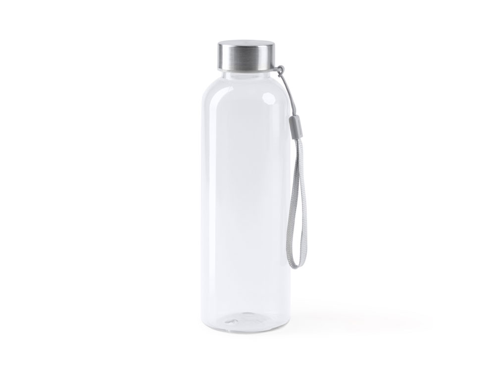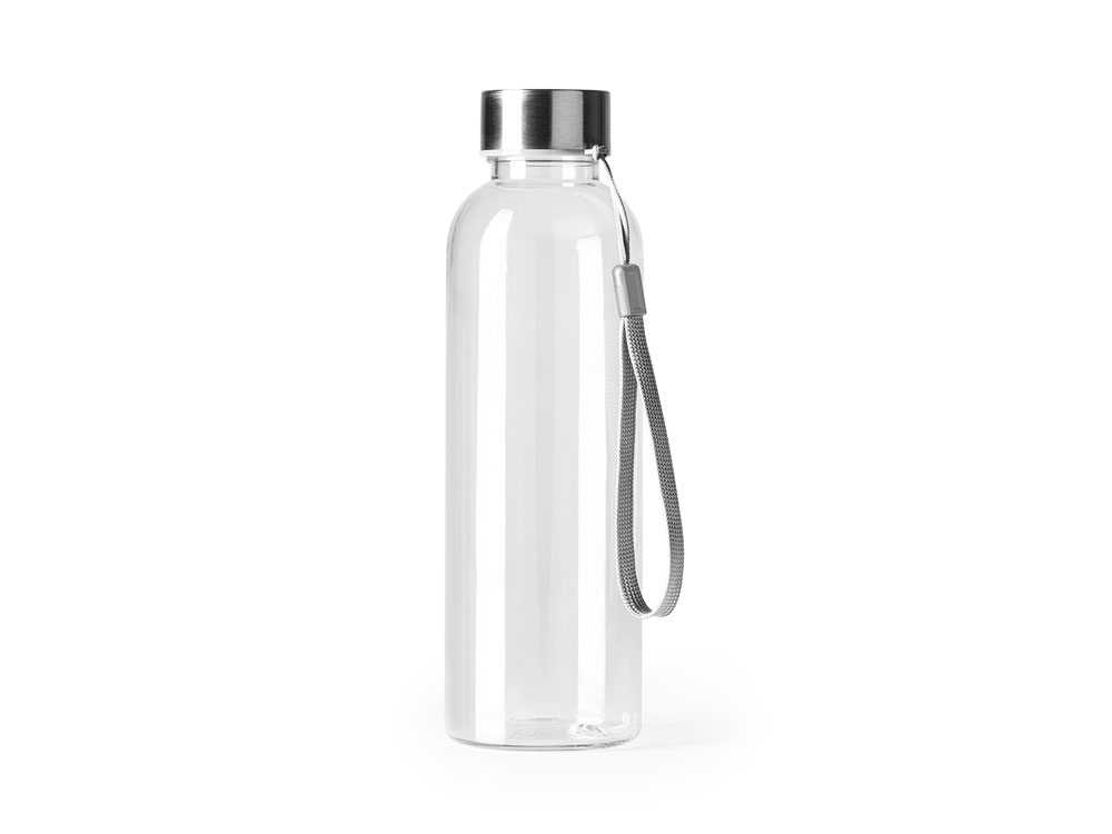 Бутылка из РПЭТ с полупрозрачным цветным корпусом. Емкость 600 мл. Ремешок для переноски в комплекте