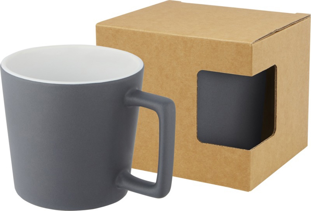 Керамическая кружка с современным дизайном и матовой отделкой. Объем 370 мл. Можно мыть в посудомоечной машине. Поставляется в упаковочной коробке из переработанного картона. Керамика.