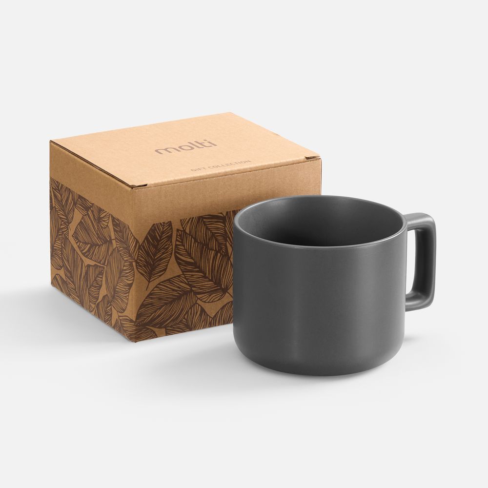 Чашка Jumbo в коробке матовая, темно-серая купить оптом и в розницу с нанесением логотипа в Уфе