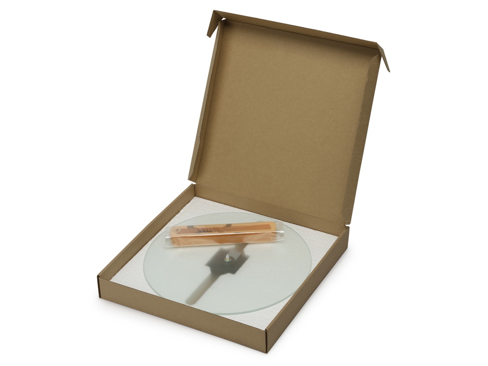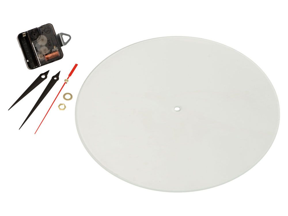 Часы предназначены для нанесения циферблата на стекло по индивидуальному дизайну с помощью технологии цифрового термотрансфера: на оборотную сторону циферблата заводским способом нанесена специальная пленка. Изображение печатают на обычной глянцевой бумаге, а затем закрепляют на циферблате термопрессом — пленка плавится, и бумага с печатью плотно припаивается к стеклу. Часы поставляются без батареек.