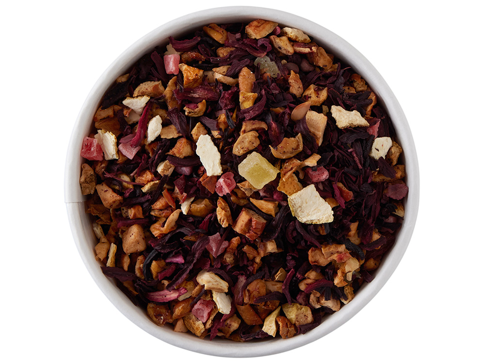 Яркий фруктовый чай с насыщенными вишнёвыми нотами и лёгкой пряной глубиной. Этот чай раскрывается сочной гаммой вкусов: яркая кислинка суданской розы играет в дуэте со сладостью яблок и ананаса, а солнечная цедра апельсина добавляет свежий цитрусовый акцент. Главная нота — насыщенная вишня, которую мягко обрамляют сливочные оттенки, превращая напиток в настоящий фруктовый десерт в чашке. Настой получается рубиновым, аромат — густым и праздничным, вкус — насыщенным и гармоничным. Сочный и праздничный, он согревает и поднимает настроение, будто зимний пунш в уютном кругу друзей.