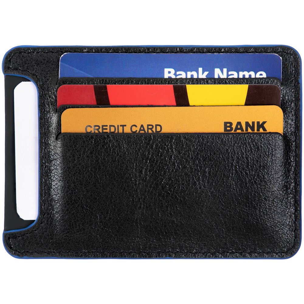 Чехол для карточек Arrival, черный с синим купить оптом и в розницу с нанесением логотипа в Уфе