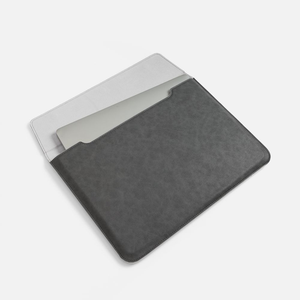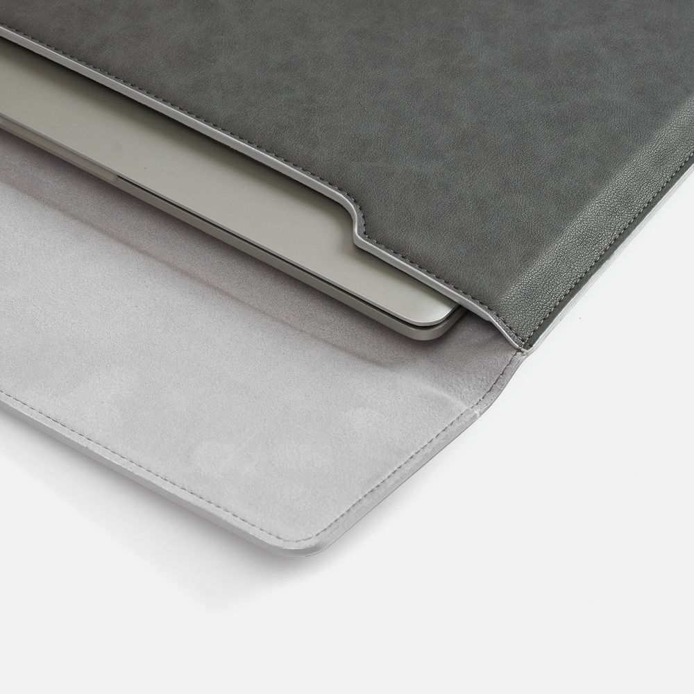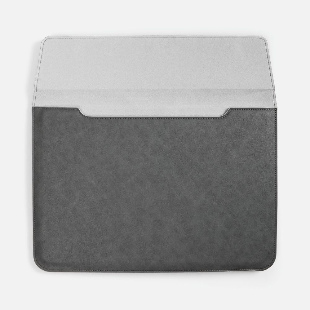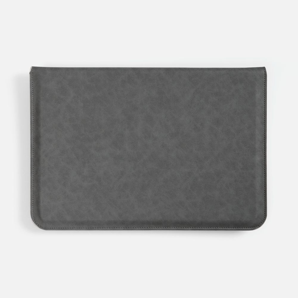 Чехол для ноутбука с диагональю до 15,6" выполнен из материала Petrus, серого, дополнен окрашенным срезом края серого цвета.