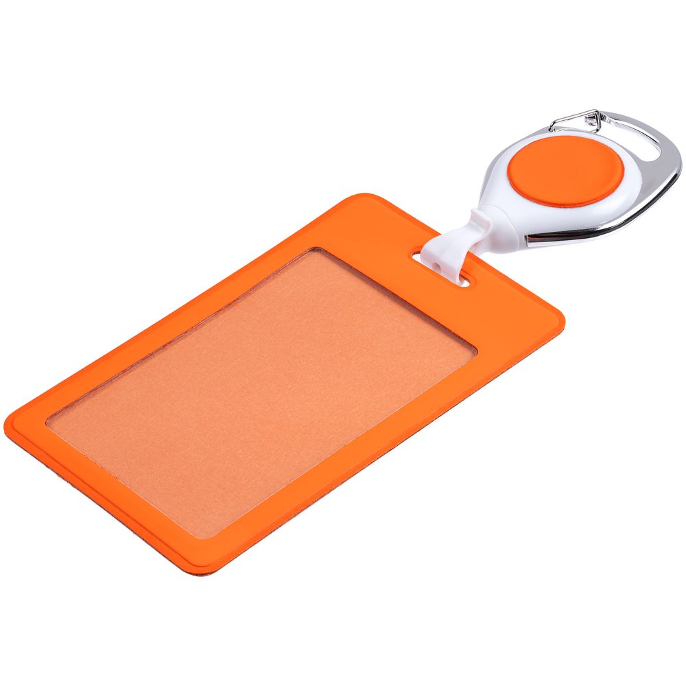 Чехол для пропуска с ретрактором Dorset, оранжевый купить оптом и в розницу с нанесением логотипа в Уфе