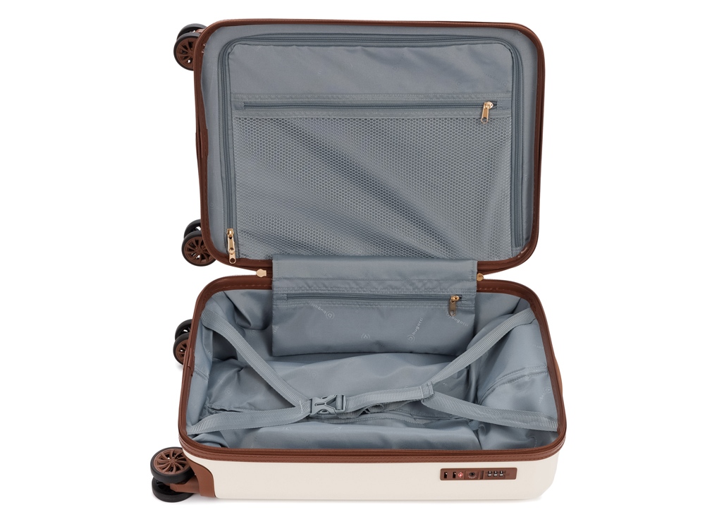 АМЕЛИЯ | AMELIA - невероятная коллекция чемоданов в ретро стиле. Приглашаем вас в мир изящной элегантности и практичной изысканности - в мир потрясающей коллекции чемоданов АМЕЛИЯ | AMELIA. Наши чемоданы – не просто средства для путешествий, это искусно созданные аксессуары, воплощающие утонченный стиль и комфорт. АМЕЛИЯ | AMELIA воплощает собой неповторимый образ, сочетающий эстетику ретро с современной функциональностью. Вся товарная линейка представлена в великолепных темно-изумрудном и кремовом оттенках. Контрастные детали насыщенного коричневого цвета, бронзовые ручки и фурнитура идеально дополняют дизайн, подчеркивают индивидуальность и выразительность каждой модели. Изготовленные из высококачественного АБС-пластика и поликарбоната, чемоданы АМЕЛИЯ | AMELIA обладают удивительной прочностью и легкостью. Четыре резиновых колеса с бесшумным ходом и возможностью поворота на 360° обеспечивают плавное передвижение по любой поверхности, сохраняя при этом полную маневренность. Интегрированный замок TSA с трехзначным кодом гарантирует защиту вашего багажа от несанкционированного доступа. Продуманная концепция больших отделений с перегородкой на молнии и дополнительными карманами максимально оптимизирует использование внутреннего пространства. Легкая телескопическая ручка с несколькими положениями фиксации обеспечивает комфорт в использовании для людей разного роста. Удобные ручки сбоку и на дне корпуса облегчают загрузку и выгрузку чемодана. Боковые держатели позволяют разместить дополнительные дорожные аксессуары. Коллекция чемоданов АМЕЛИЯ | AMELIA – это виртуозное сочетание эксклюзивного дизайна, комфорта и надежности, созданное для тех, кто ценит эстетику и функциональность в каждом своем путешествии. СВОЙСТВА: Внутренняя организация: основное отделение на молнии с 2 отсеками, сетчатой перегородкой с карманом на молнии, дополнительным карманом на молнии и 2 фиксирующими ремнями. Внешняя организация: телескопическая ручка, интегрированный кодовый замок TSA, 4 двойных колеса, боковая ручка, боковые держатели. Размер: 32 х 22 х 53 см Объём: 30 л Вес: 2,70 кг Материал: Поликарбонат / АБС-пластик
