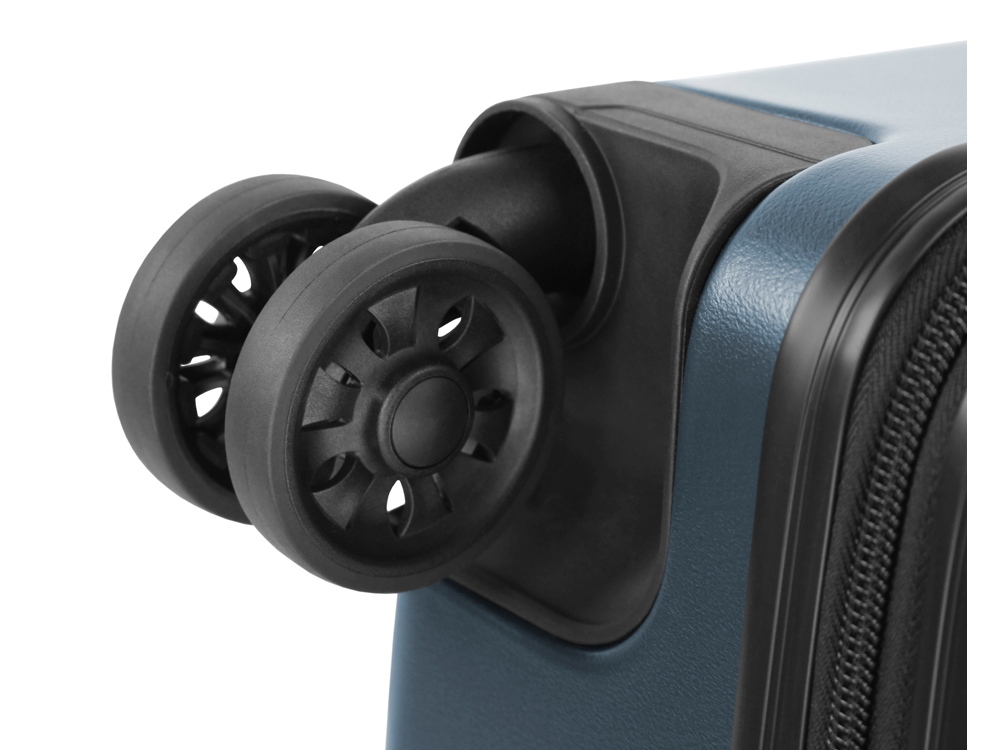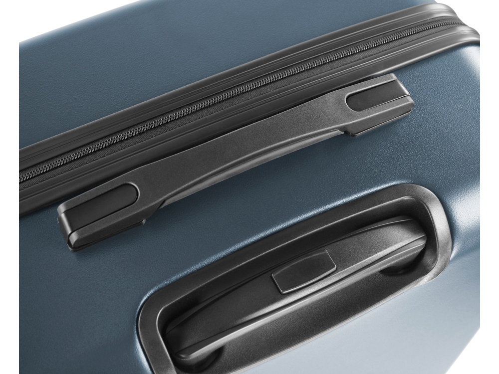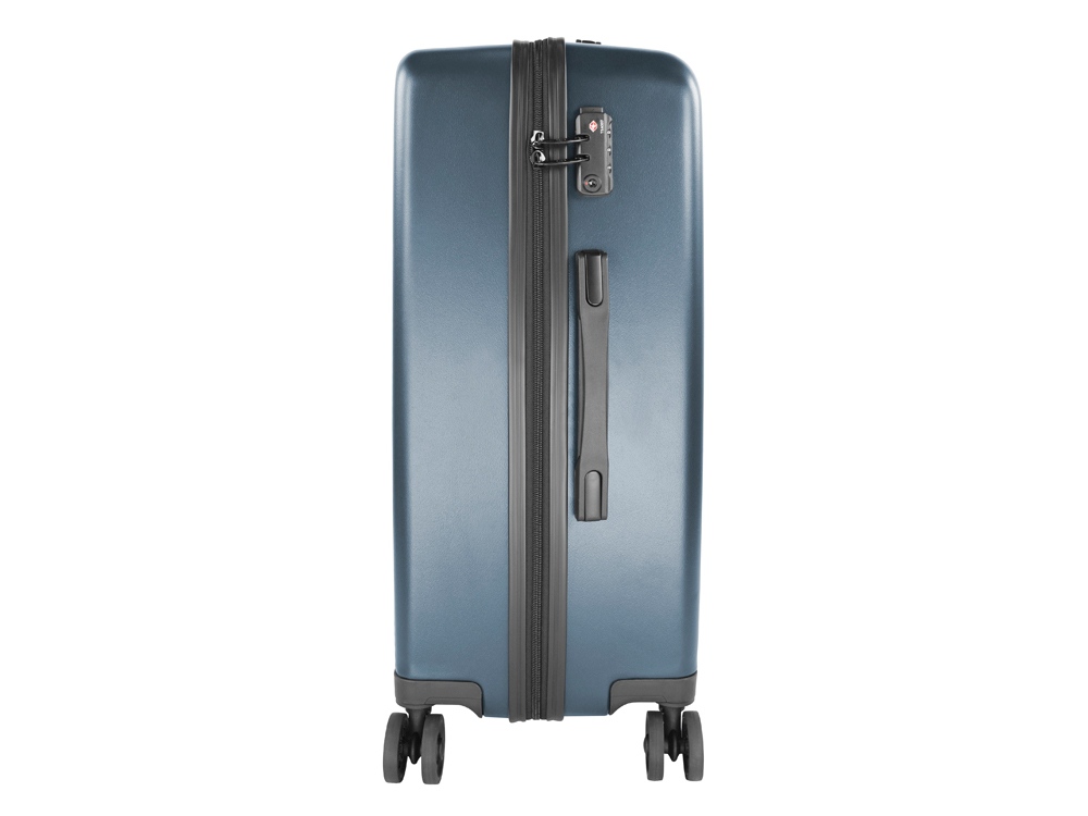 ЧЕМОДАН КАЛЛИСТО | KALLISTO Серия КАЛЛИСТО | KALLISTO воплощает собой нашу страсть к путешествиям. Тонкие диагональные полосы и стильная поверхность с металлическим оттенком подчёркивают непринужденную привлекательность коллекции, представленной в чёрном и тёмно-синем цветах. Логотип Bugatti аккуратно встроен в металлический шильдик на корпусе. Четыре двойных резиновых колеса просты в управлении и очень удобны. Они могут вращаться на 360°, обеспечивая лёгкий ход по любой поверхности при сохранении полной манёвренности. Лёгкая выдвижная телескопическая ручка удобно фиксируется в нескольких положениях. Замок TSA с трехзначным кодом надёжно защищает содержимое багажа от несанкционированного доступа, а дополнительная ручка на дне корпуса облегчает загрузку и выгрузку чемодана. Продуманная концепция больших отделений с внутренней перегородкой на молнии позволяет максимально практично использовать внутреннее пространство. СВОЙСТВА: Внутренняя организация: основное отделение на молнии с 2 отсеками, сетчатой перегородкой с карманом на молнии, карманом на молнии и 2 фиксирующими ремнями Внешняя организация: телескопическая ручка, кодовый замок TSA, 4 двойных колеса, боковая ручка, ручка на дне Размер: 44,5 x 26 x 63,5 см Объём: 64,88 л Вес: 3,60 кг Материал: АБС-пластик