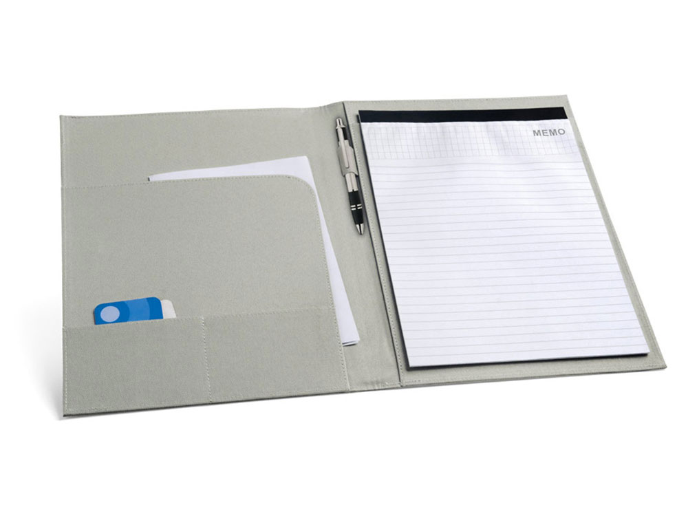 Папка A4 из 600D с застежкой на резинке. Папка имеет блокнот из 20 листов в линейку, 3 внутренних кармана и держатель для шариковой ручки (ручка не входит в комплект). 240 x 325 x 15 мм. Вид нанесения, рекомендуемый поставщиком: гравировка, трансфер.