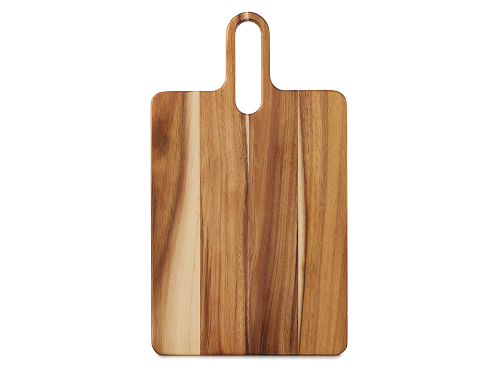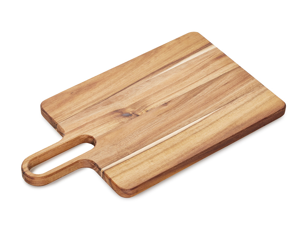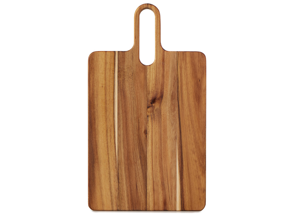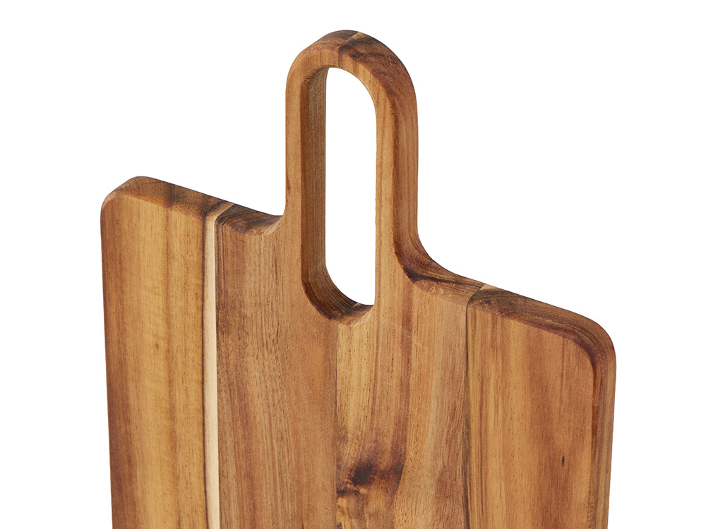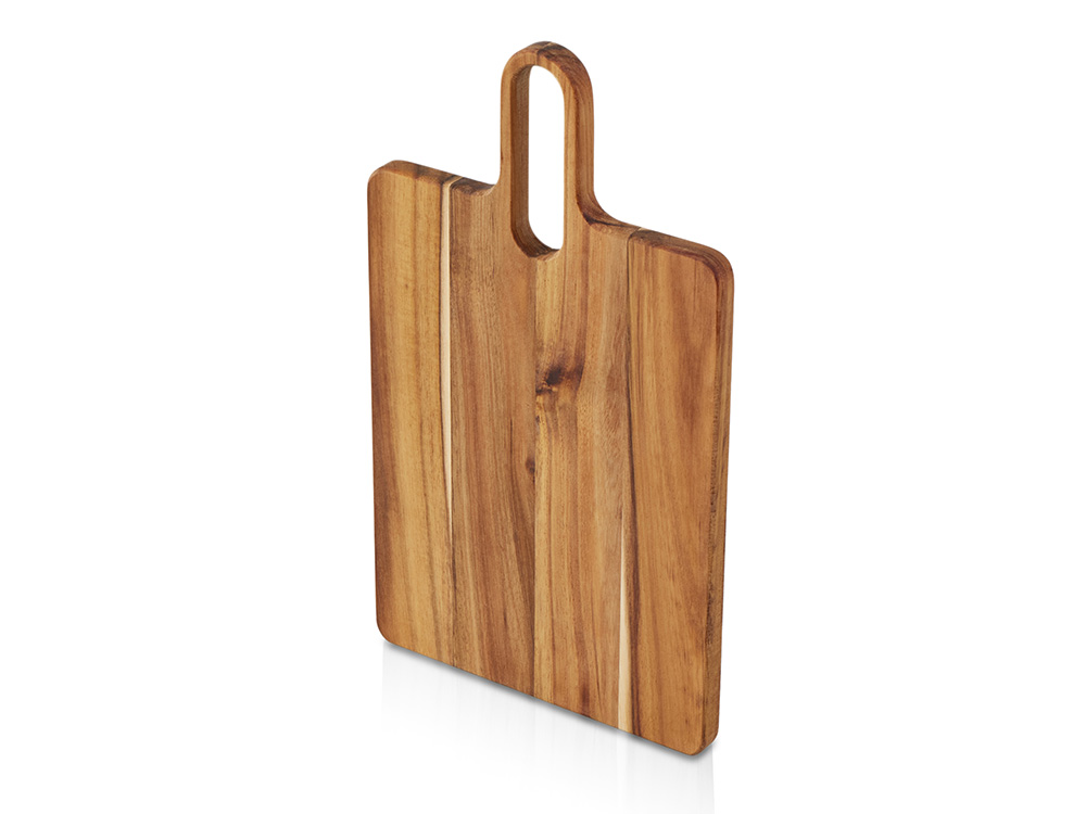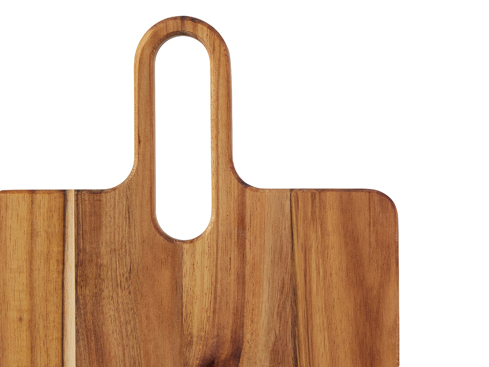 Разделочная доска Вэй выполнена из массива акации — прочного и влагостойкого материала, который устойчив к появлению царапин и деформации. Благодаря плотной структуре древесина не впитывает запахи и соки продуктов, что делает доску гигиеничной и безопасной в использовании. Благодаря удлиненной ручке доска удобно лежит в руке, а большое отверстие позволяет с легкостью повесить доску на крючок для хранения. Доска Вэй подходит для нарезки овощей, мяса, зелени, а также для подачи закусок. Компактная, практичная и стильная — она станет удобным помощником на кухне.