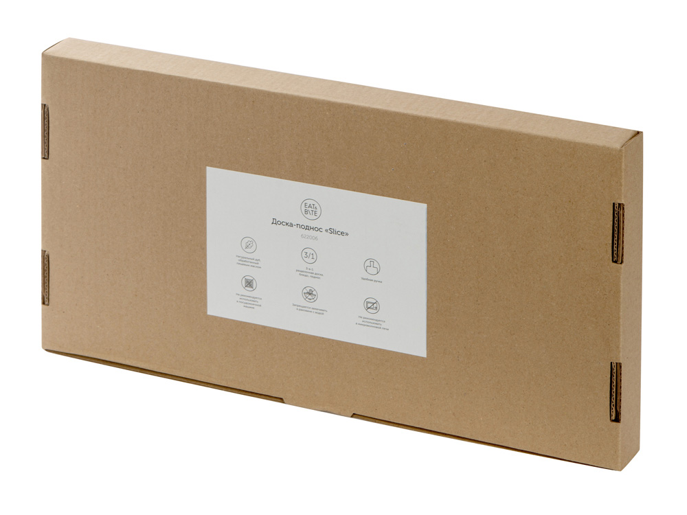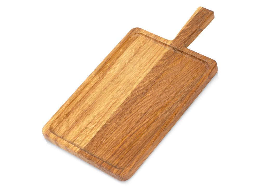 Доска-поднос Slice от Eat&Bite изготовлена из натурального дуба. Чтобы дерево не портилось от влаги, но при этом оставалось безопасным в использовании, доска покрыта пищевым маслом. Доска обладает углублением и небольшими бортиками для стока жидкости из нарезаемых продуктов. Благодаря ручке её удобно использовать в качестве подноса или блюда. • Натуральный дуб • Функциональность 3-в-1: разделочная доска, блюдо, поднос • Удобная ручка • Большая площадь для нанесения изображения Продукция Eat&Bite – это сочетание изысканного стиля и функциональности. Доску нельзя замачивать в раковине с водой. Чтобы она прослужила как можно дольше, не стоит её мыть в посудомоечной машине и использовать в микроволновке. Также рекомендуем смазывать изделие раз в несколько месяцев растительным, например, оливковым маслом.