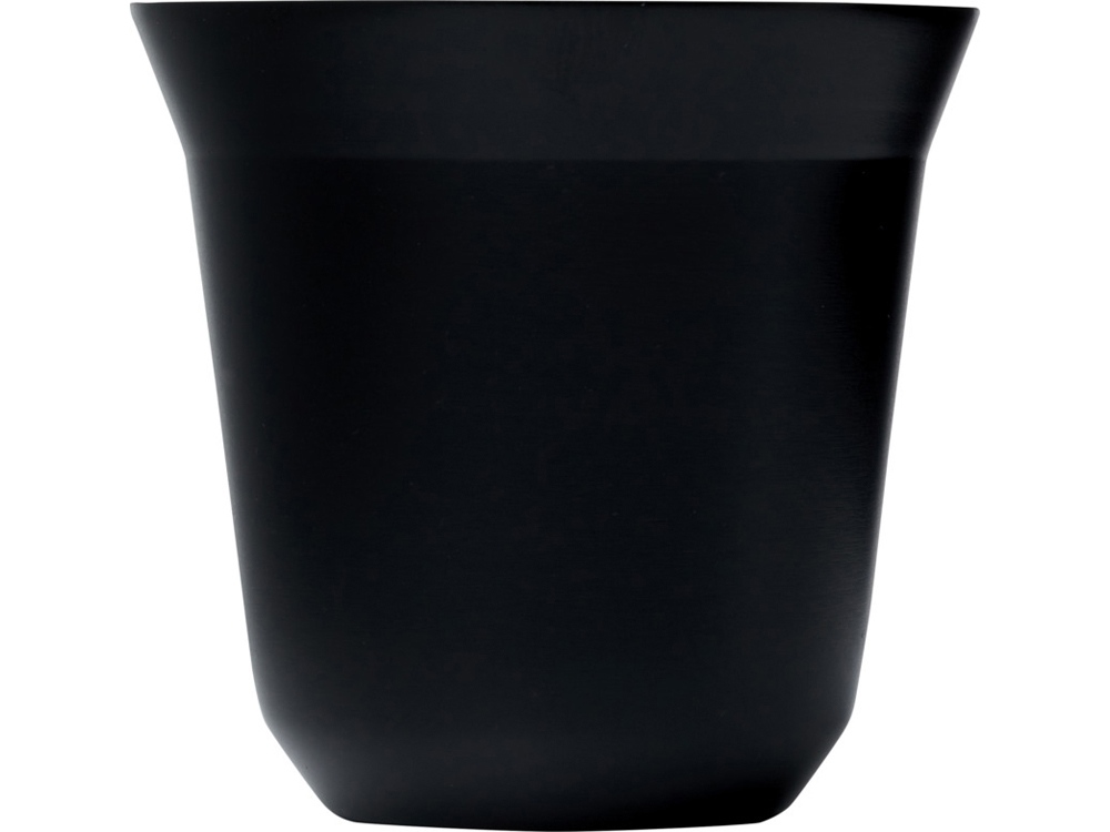 Набор из 2 чашек для эспрессо из нержавеющей стали, сертифицированной RCS, с двойными стенками. Объем — 80 мл. Поставляется в подарочной коробке из переработанного картона. 91% RCS certified recycled stainless steel.