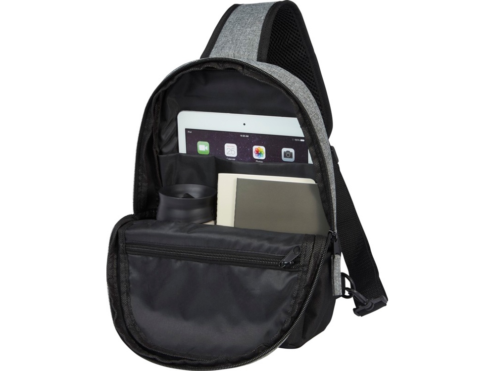 Двухцветная сумка на одно плечо, снаружи изготовленная из 100% переработанных материалов по стандартам GRS, имеет 1 передний карман на молнии и основное отделение на молнии с карманом для планшета диаметром 12 дюймов. Она также имеет внутренний карман на молнии для безопасного хранения, а благодаря регулируемому мягкому плечевому ремню ее удобно носить с собой.