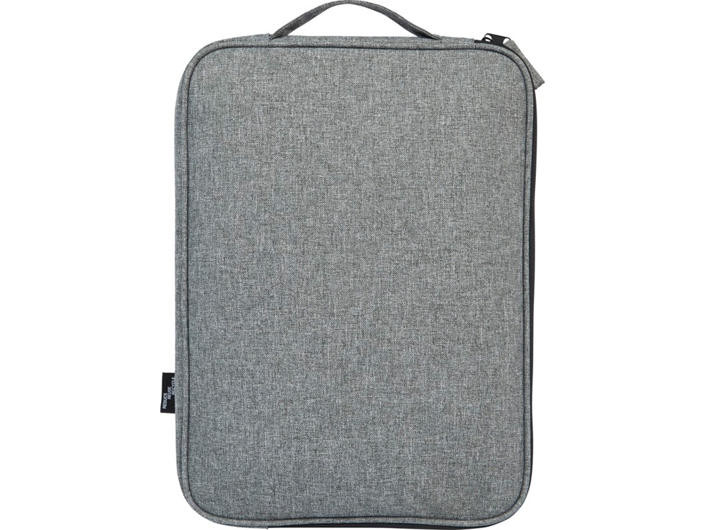 Двухцветный чехол для ноутбука снаружи изготовлен из 100% переработанных материалов по стандарту GRS и имеет компактное защищенное отделение, которое подходит для большинства 14-дюймовых ноутбуков. Он также имеет передний карман на молнии для документов, блокнотов и небольших аксессуаров, а также ручку для переноски, что идеально подходит для ежедневных поездок.