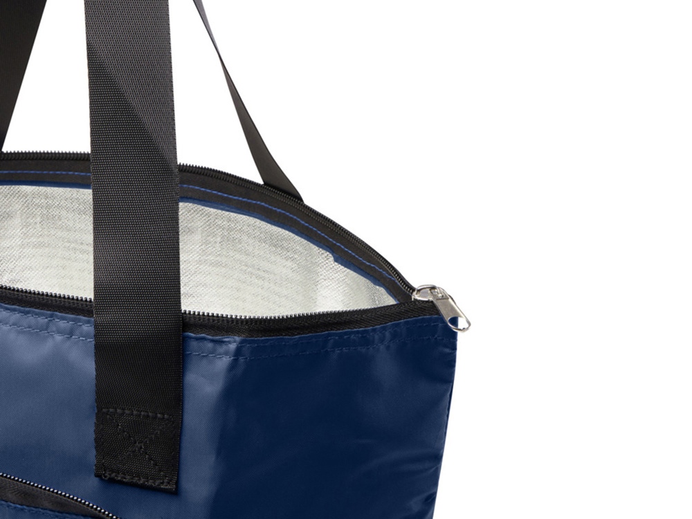 Эта легкая, но прочная сумка-холодильник, созданная для удобства и практичности, легко складывается в компактный чехол с петлей для подвешивания или переноски, что делает ее идеальным вариантом для пикников, походов за продуктами или приключений на свежем воздухе. Основное отделение на молнии с алюминиевой фольгой, открытый передний карман и две длинные ручки из качественного гладкого тканого материала. Изготовлен из переработанного полиэстера без содержания ПВХ. Объем: 15 литр. GRS certified recycled polyester.