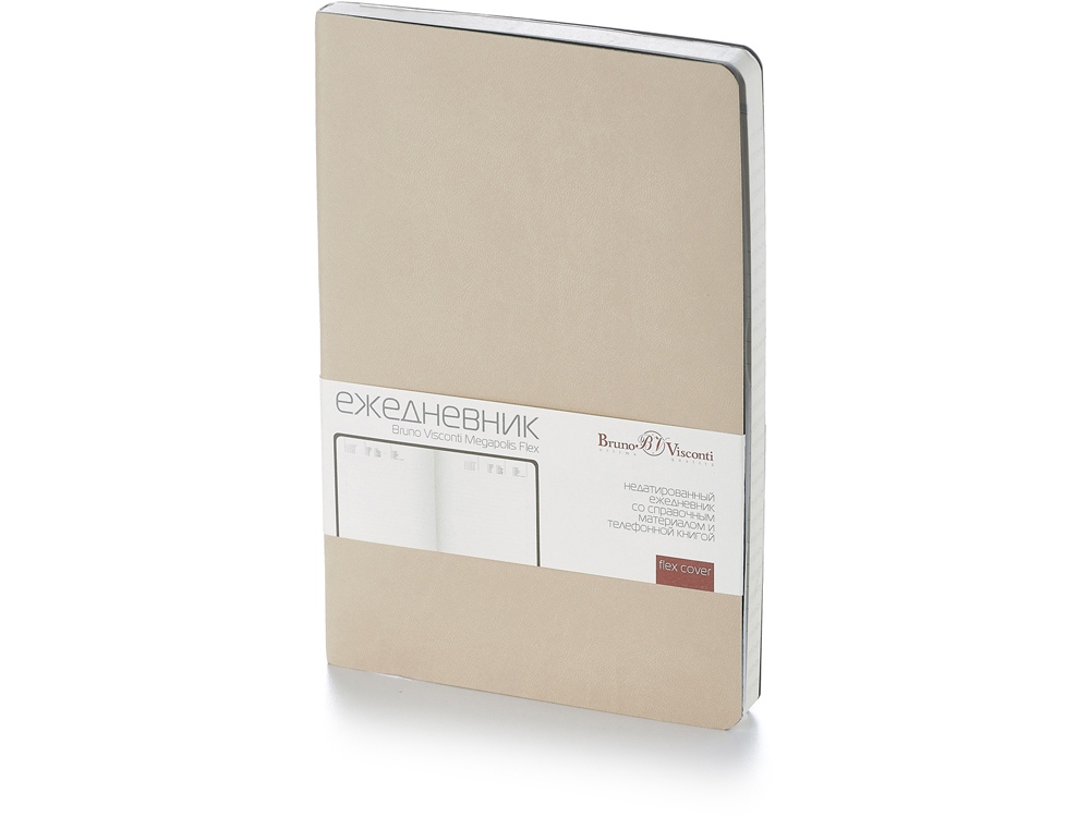 Недатированный ежедневник Megapolis Flex от бренда Bruno Visconti - это качественный корпоративный подарок по выгодной цене, произведенный специально под персонализацию. Представлен в универсальном формате А5 и состоит из 272 страниц. Элегантная закругленная flex обложка из гладкого кожзама имеет гибкую конструкцию и приятна на ощупь. А интегральный переплет позволяет сэкономить место в деловой сумке или портфеле – ежедневник можно просто свернуть в трубку или согнуть пополам. В ежедневнике Megapolis Flex есть полезная справочная информация и телефонная книга, а также страницы для записи идей, мыслей и составления рабочих планов. Для изготовления страниц используется качественный бежевый офсет повышенной плотности (70 г/кв м). Блок не привязан к конкретным датам – они указываются в выделенном поле вверху страницы. Тонированная бумага не дает глазам утомиться даже при длительной работе. Все ежедневники от бренда Bruno Visconti можно персонализировать с помощью тиснения обложки - золотой или серебряной фольгой. Наши ежедневники помогут быть успешным и эффективным в карьере и повседневной жизни!