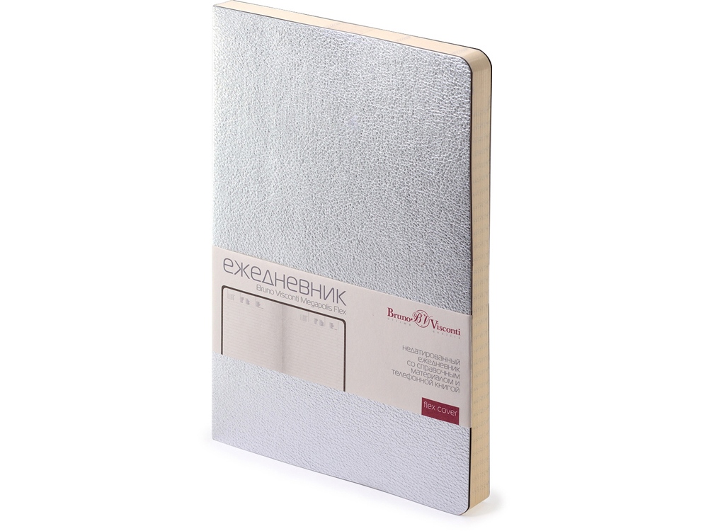 Недатированный ежедневник Megapolis Flex от бренда Bruno Visconti - это качественный корпоративный подарок по выгодной цене, произведенный специально под персонализацию. Представлен в универсальном формате А5 и состоит из 272 страниц. Элегантная закругленная flex обложка из гладкого кожзама имеет гибкую конструкцию и приятна на ощупь. А интегральный переплет позволяет сэкономить место в деловой сумке или портфеле – ежедневник можно просто свернуть в трубку или согнуть пополам. В ежедневнике Megapolis Flex есть полезная справочная информация и телефонная книга, а также страницы для записи идей, мыслей и составления рабочих планов. Для изготовления страниц используется качественный бежевый офсет повышенной плотности (70 г/кв м). Блок не привязан к конкретным датам – они указываются в выделенном поле вверху страницы. Тонированная бумага не дает глазам утомиться даже при длительной работе. Все ежедневники от бренда Bruno Visconti можно персонализировать с помощью тиснения обложки - золотой или серебряной фольгой. Наши ежедневники помогут быть успешным и эффективным в карьере и повседневной жизни!