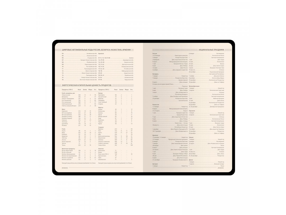 Недатированный ежедневник Megapolis Flex от бренда Bruno Visconti - это качественный корпоративный подарок по выгодной цене, произведенный специально под персонализацию. Представлен в универсальном формате А5 и состоит из 272 страниц. Элегантная закругленная flex обложка из гладкого кожзама имеет гибкую конструкцию и приятна на ощупь. А интегральный переплет позволяет сэкономить место в деловой сумке или портфеле – ежедневник можно просто свернуть в трубку или согнуть пополам. В ежедневнике Megapolis Flex есть полезная справочная информация и телефонная книга, а также страницы для записи идей, мыслей и составления рабочих планов. Для изготовления страниц используется качественный бежевый офсет повышенной плотности (70 г/кв м). Блок не привязан к конкретным датам – они указываются в выделенном поле вверху страницы. Тонированная бумага не дает глазам утомиться даже при длительной работе. Все ежедневники от бренда Bruno Visconti можно персонализировать с помощью тиснения обложки - золотой или серебряной фольгой. Наши ежедневники помогут быть успешным и эффективным в карьере и повседневной жизни!