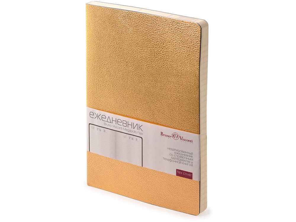 Недатированный ежедневник Megapolis Flex от бренда Bruno Visconti - это качественный корпоративный подарок по выгодной цене, произведенный специально под персонализацию. Представлен в универсальном формате А5 и состоит из 272 страниц. Элегантная закругленная flex обложка из гладкого кожзама имеет гибкую конструкцию и приятна на ощупь. А интегральный переплет позволяет сэкономить место в деловой сумке или портфеле – ежедневник можно просто свернуть в трубку или согнуть пополам. В ежедневнике Megapolis Flex есть полезная справочная информация и телефонная книга, а также страницы для записи идей, мыслей и составления рабочих планов. Для изготовления страниц используется качественный бежевый офсет повышенной плотности (70 г/кв м). Блок не привязан к конкретным датам – они указываются в выделенном поле вверху страницы. Тонированная бумага не дает глазам утомиться даже при длительной работе. Все ежедневники от бренда Bruno Visconti можно персонализировать с помощью тиснения обложки - золотой или серебряной фольгой. Наши ежедневники помогут быть успешным и эффективным в карьере и повседневной жизни!
