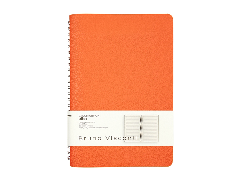 Недатированный ежедневник Alba ТМ Bruno Visconti формата А5 сочетает в себе два тренда, набирающих популярность среди современных деловых людей: полускрытый гребень, позволяющий переворачивать листы на 360 градусов, и мягкая гибкая обложка из искусственной кожи высокого качества исполнения. Внутренний блок изготовлен из бежевой бумаги плотностью 70 г/кв.м и содержит 272 страницы, в т.ч. оригинальную справочную информацию на 19 страницах