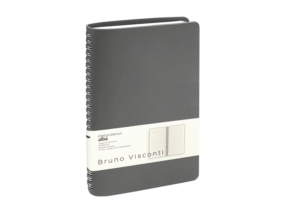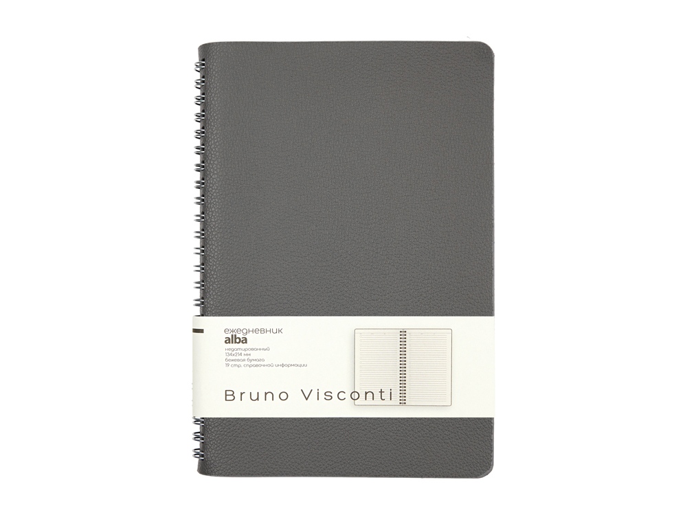 Недатированный ежедневник Alba ТМ Bruno Visconti формата А5 сочетает в себе два тренда, набирающих популярность среди современных деловых людей: полускрытый гребень, позволяющий переворачивать листы на 360 градусов, и мягкая гибкая обложка из искусственной кожи высокого качества исполнения. Внутренний блок изготовлен из бежевой бумаги плотностью 70 г/кв.м и содержит 272 страницы, в т.ч. оригинальную справочную информацию на 19 страницах