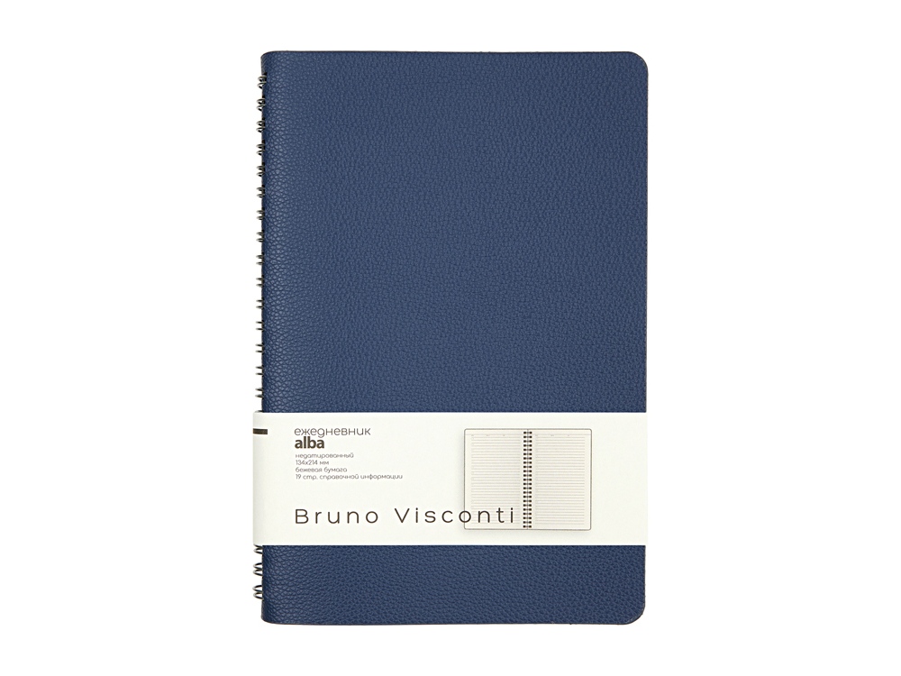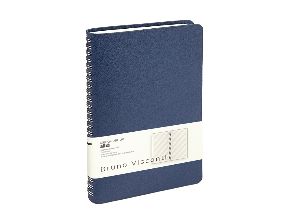 Недатированный ежедневник Alba ТМ Bruno Visconti формата А5 сочетает в себе два тренда, набирающих популярность среди современных деловых людей: полускрытый гребень, позволяющий переворачивать листы на 360 градусов, и мягкая гибкая обложка из искусственной кожи высокого качества исполнения. Внутренний блок изготовлен из бежевой бумаги плотностью 70 г/кв.м и содержит 272 страницы, в т.ч. оригинальную справочную информацию на 19 страницах