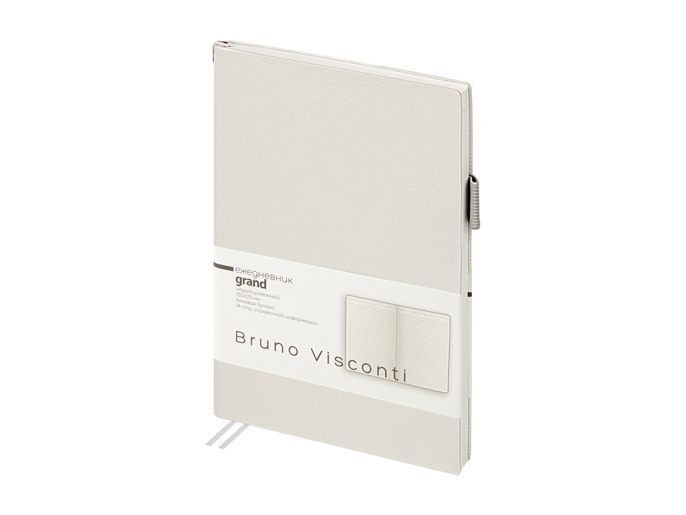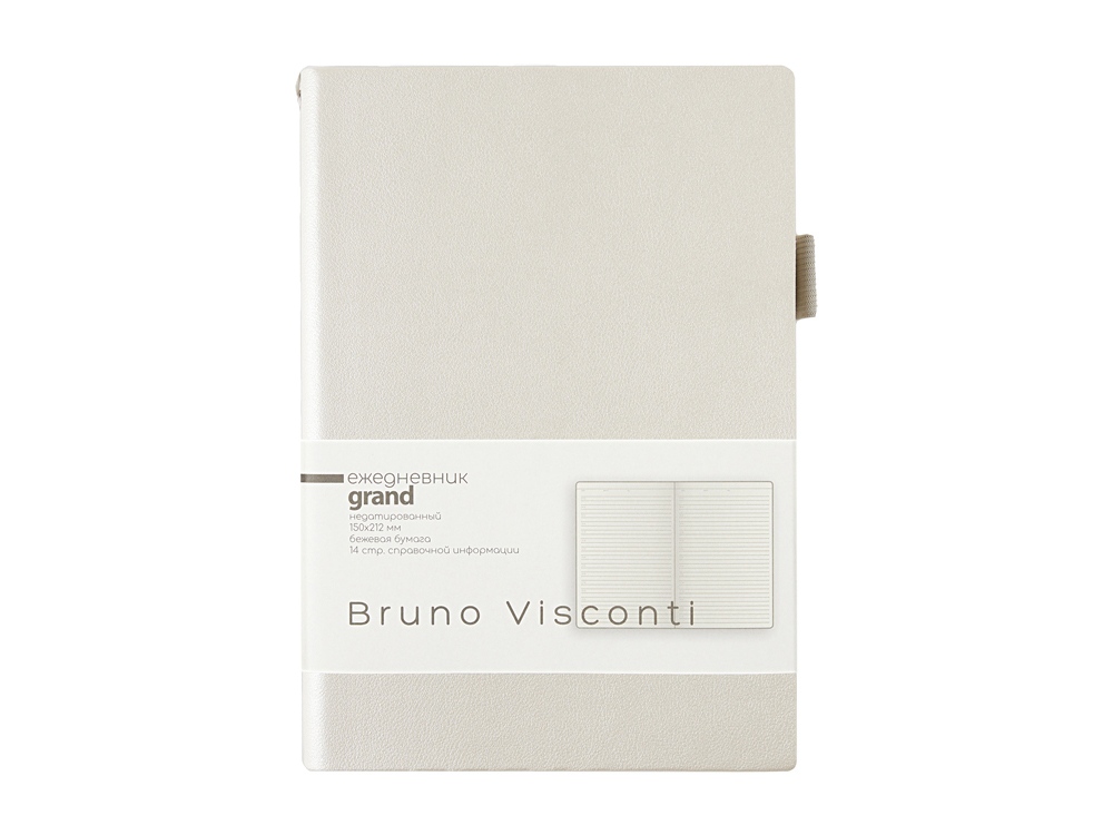 Мягкая, гибкая обложка с необычной фактурой, приятной на ощупь, петля под ручку, двойное ляссе, стандартный формат А5 — все это ежедневник Grand. А благодаря оригинальному способу фиксации ляссе на корешке ежедневник получил новое звучание. Такая фишка придется по вкусу всем, кто придает большое значение деталям. Недатированный блок изготовлен из бежевой бумаги плотностью 80 г/кв.м. Ежедневник имеет справочную информацию на 14 страницах.