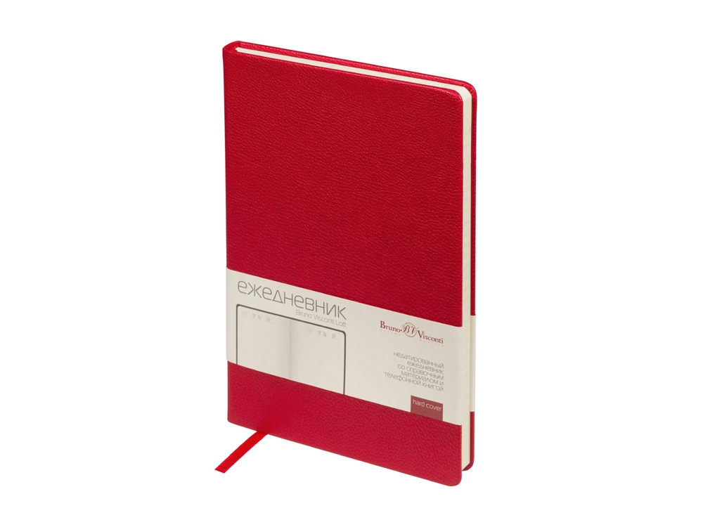 Недатированный ежедневник Loft формата А5 от Bruno Visconti - идеальный баланс между стилем и практичностью. Твердая обложка из высококачественной экокожи максимально повторяет фактуру натуральной кожи. Скругленные углы блока и обложки позволяют уберечь листы от замятий и придают ежедневнику утонченности и благородства. Для удобства навигации предусмотрена закладка-ляссе в цвет обложки. Внутренний блок ежедневника содержит справочную информацию на 19 страницах, телефонную книгу на 26 страницах и блок для ежедневного планирования в линейку с указанием времени суток (интервал в один час). Блок изготовлен из бежевой бумаги плотностью 70 г/кв.м.
