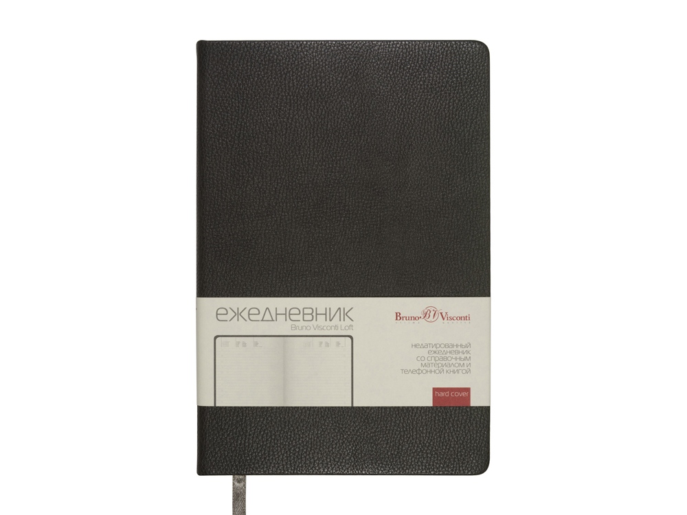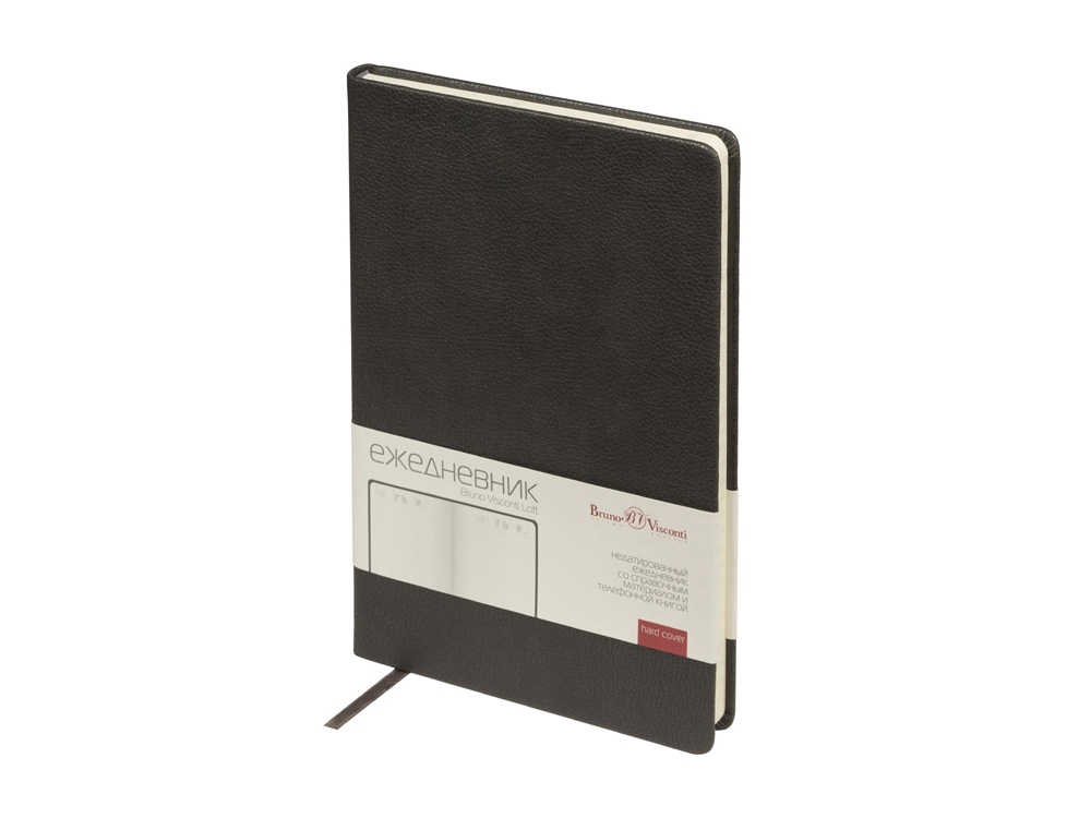 Недатированный ежедневник Loft формата А5 от Bruno Visconti - идеальный баланс между стилем и практичностью. Твердая обложка из высококачественной экокожи максимально повторяет фактуру натуральной кожи. Скругленные углы блока и обложки позволяют уберечь листы от замятий и придают ежедневнику утонченности и благородства. Для удобства навигации предусмотрена закладка-ляссе в цвет обложки. Внутренний блок ежедневника содержит справочную информацию на 19 страницах, телефонную книгу на 26 страницах и блок для ежедневного планирования в линейку с указанием времени суток (интервал в один час). Блок изготовлен из бежевой бумаги плотностью 70 г/кв.м.