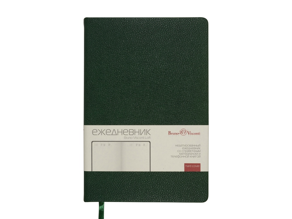Недатированный ежедневник Loft формата А5 от Bruno Visconti - идеальный баланс между стилем и практичностью. Твердая обложка из высококачественной экокожи максимально повторяет фактуру натуральной кожи. Скругленные углы блока и обложки позволяют уберечь листы от замятий и придают ежедневнику утонченности и благородства. Для удобства навигации предусмотрена закладка-ляссе в цвет обложки. Внутренний блок ежедневника содержит справочную информацию на 19 страницах, телефонную книгу на 26 страницах и блок для ежедневного планирования в линейку с указанием времени суток (интервал в один час). Блок изготовлен из бежевой бумаги плотностью 70 г/кв.м.