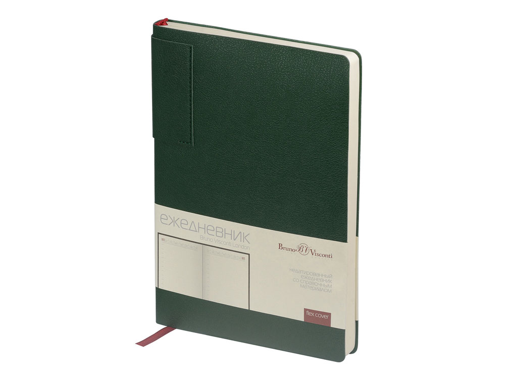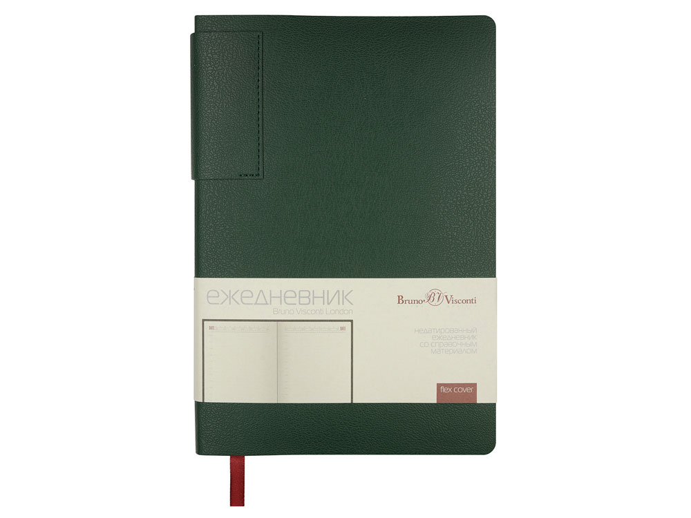 Классический ежедневник из коллекции London формата А5, недатированный. Лаконичная модель в ярком исполнении: гибкая обложка темно-зеленого цвета с контрастной или в цвет обложки нашивкой. Выполнен из качественной и прочной искусственной кожи, крепление внутреннего блока - книжный переплет, закладка- ляссе. Углы обложки скруглены. Внутри есть страница для личных данных, а также блок справочной информации (часовые пояса, аэропорты, телефонные коды, размеры одежды, автомобильные коды, римские цифры, расход калорий, формат бумаги, единицы измерения, штрихкоды, распад алкоголя в крови, города миллионники РФ и СНГ, национальные праздники, термины международной торговли, температура, скорость, давление, буквенные коды стран, энергетическая ценность продуктов, страны мира).