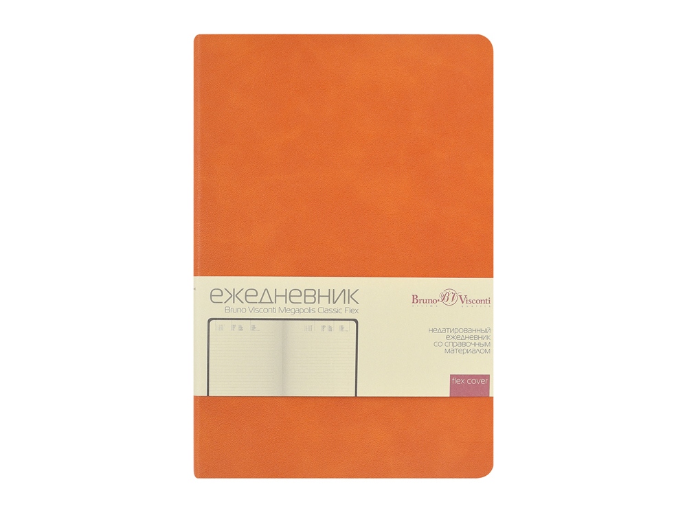 Классическое воплощение минимализма: формат А5, гибкая обложка, скругленный угол блока и обложки, ровные, четкие линии, отсутствие декоративных элементов. Внутренний блок изготовлен из бежевой бумаги плотностью 70 г/м2 и, помимо раздела для планирования рабочего времени, включает в себя 12 страниц справочной информации. Функциональность и эргономичность — это то, что отличает недатированный ежедневник Megapolis Classic Flex ТМ Bruno Visconti от всех других ежедневников.