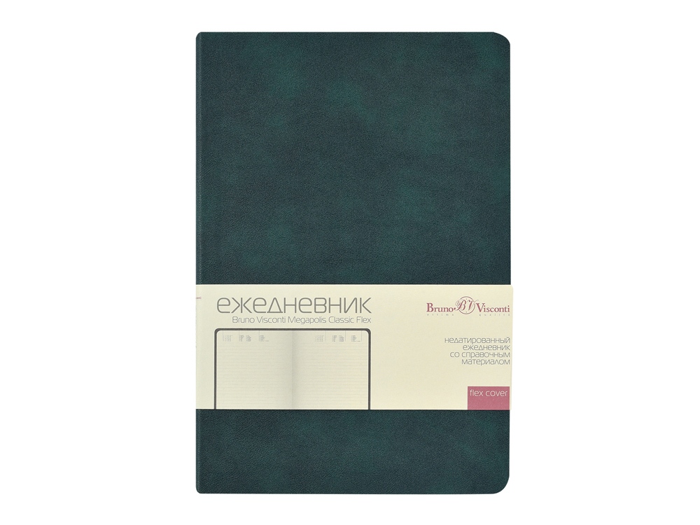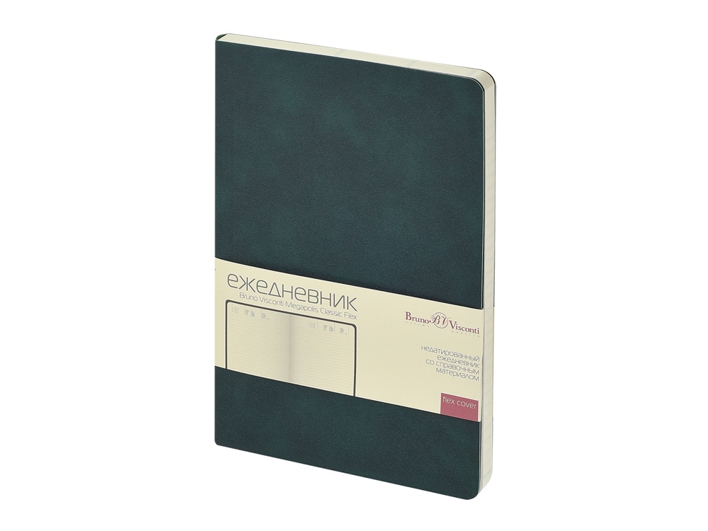 Классическое воплощение минимализма: формат А5, гибкая обложка, скругленный угол блока и обложки, ровные, четкие линии, отсутствие декоративных элементов. Внутренний блок изготовлен из бежевой бумаги плотностью 70 г/м2 и, помимо раздела для планирования рабочего времени, включает в себя 12 страниц справочной информации. Функциональность и эргономичность — это то, что отличает недатированный ежедневник Megapolis Classic Flex ТМ Bruno Visconti от всех других ежедневников.