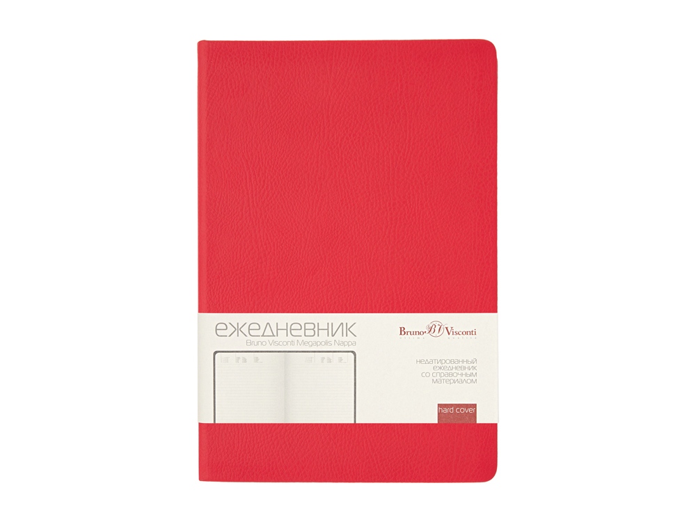 Ежедневник формата А5 Megapolis Nappa ТМ Bruno Visconti — для тех, кто предпочитает утилитарные ежедневники с яркими элементами. Двойное ляссе, окрашенный обрез и фактурная искусственная кожа твердой обложки придают этому ежедневнику привлекательности и благородства одновременно. Блок произведен из бежевой бумаги плотностью 70 г/кв.м и помимо раздела для планирования содержит справочную информацию