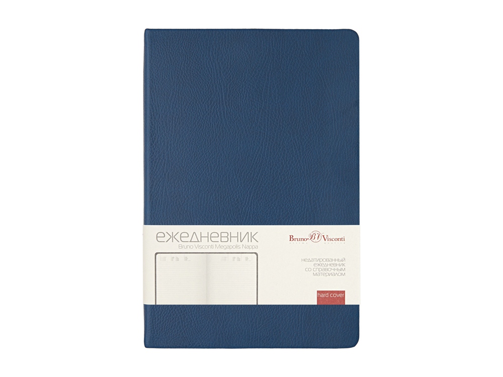 Ежедневник формата А5 Megapolis Nappa ТМ Bruno Visconti — для тех, кто предпочитает утилитарные ежедневники с яркими элементами. Двойное ляссе, окрашенный обрез и фактурная искусственная кожа твердой обложки придают этому ежедневнику привлекательности и благородства одновременно. Блок произведен из бежевой бумаги плотностью 70 г/кв.м и помимо раздела для планирования содержит справочную информацию