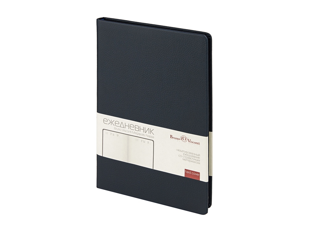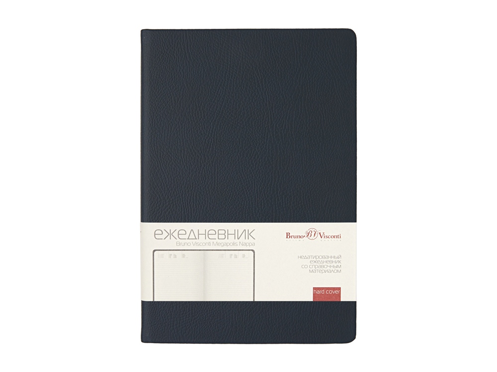 Ежедневник формата А5 Megapolis Nappa ТМ Bruno Visconti — для тех, кто предпочитает утилитарные ежедневники с яркими элементами. Двойное ляссе, окрашенный обрез и фактурная искусственная кожа твердой обложки придают этому ежедневнику привлекательности и благородства одновременно. Блок произведен из бежевой бумаги плотностью 70 г/кв.м и помимо раздела для планирования содержит справочную информацию