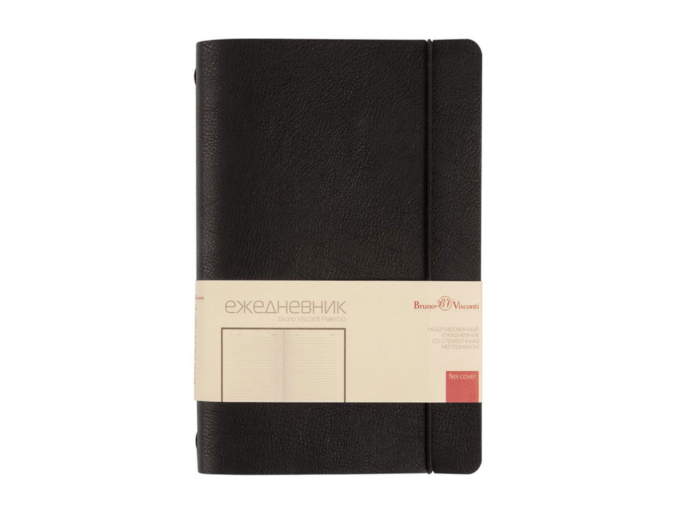 Недатированный ежедневник Bruno Visconti Palermo формата А5 с гибкой (flex) обложкой – практичный помощник в деле планирования рабочего времени для деловых людей, живущих в ритме мегаполиса. Отличительной особенностью ежедневника является горизонтальная, скрепляющая обложку и блок, тоненькая резинка. Оригинальное решение позволяет раскрывать ежедневник на 180 градусов и вести записи у самого края корешка. Для фиксации второй резинки, не позволяющей ежедневнику раскрываться, предусмотрена выемка на обложке. Обложка тонка, но фактурность придает ей элемент брутальности, а бархатистое нанесение на ее оборотной стороне- благородство и статусность. Картонный карман для визиток, записок, бумаг – функциональная деталь и приятная дополнительная опция. Бумажный блок изготовлен из бумаги бежевого цвета, плотностью 70 г/кв.м и содержит 272 страницы, 23 из которых справочная информация.