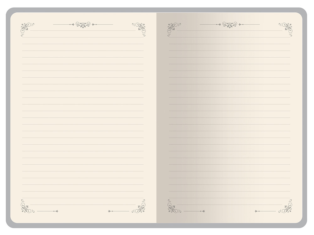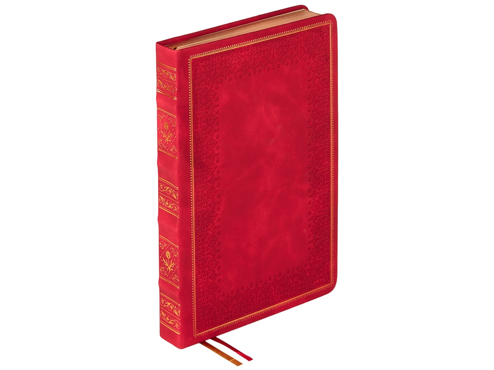 Недатированный ежедневник Royal формата А5 с твердой обложкой из искусственной кожи с имитацией нубука украшен художественным бронзовым и блинтовым тиснением. Внутри 256 страниц, выполненных из качественной бежевой бумаги в линейку плотностью 100 г/м². Два шелковых ляссе в цвет обреза блока и обложки облегчают навигацию по записям. Французский корешок дополнительно декорирован изящным бронзовым тиснением в виде виньеток. Скругленные углы обложки и блока подчеркивают стильный дизайн изделия, а блеск бронзового обреза дарит ежедневнику благородный и роскошный внешний вид.