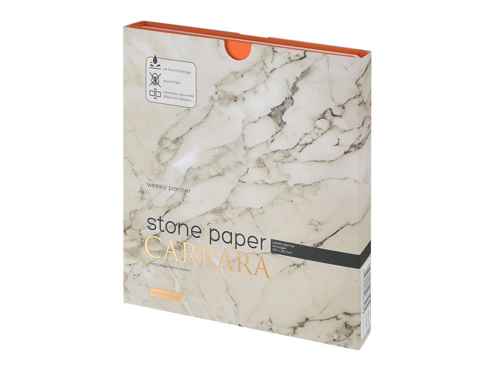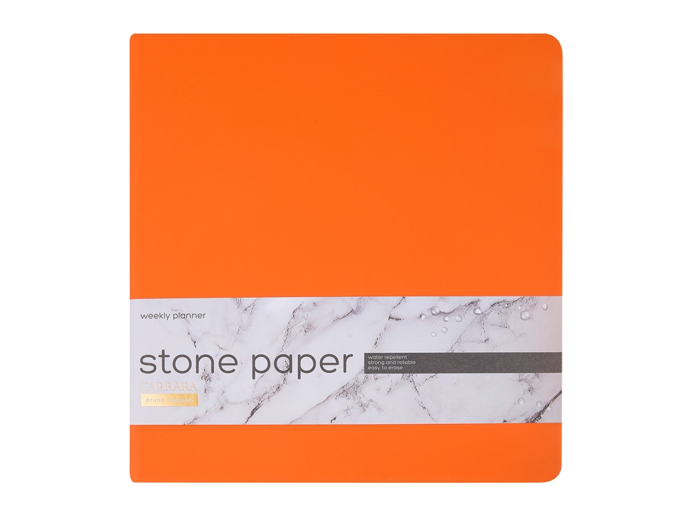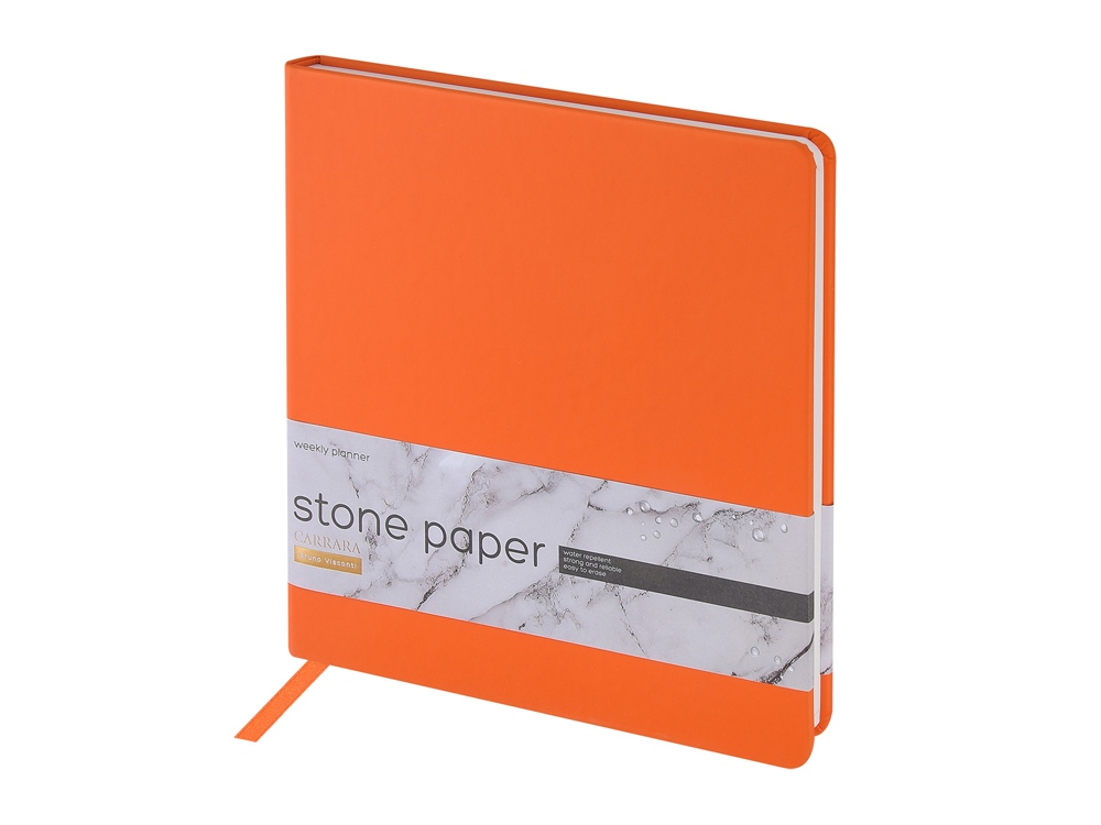 Недатированный еженедельник Carrara ТМ Bruno Visconti во всем уникален. Блок произведен из каменной бумаги плотностью 144 г/кв.м, отличающейся особой гладкостью и повышенной прочностью. Она не боится воды и пролитого кофе, достаточно просто протереть сухой салфеткой. Специально разработанная сетка блока, включает в себя и планер на год, и трендовую справочную информацию, и помесячный развернутый план, и основной блок из плана на неделю. Удобный для еженедельника квадратный формат А5+, обложка из искусственной кожи Soft Touch, блок из каменной бумаги — превосходное предложение!