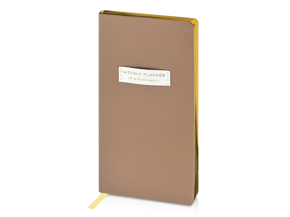 Еженедельник А6 с нашивкой — компактный и стильный вариант для планирования недели, заметок и коротких рабочих записей. Гибкая обложка из искусственной кожи с мягкой фактурой выглядит строго, а светлая нашивка добавляет аккуратный дизайнерский акцент. Золотой обрез подчёркивает характер модели и красиво смотрится вживую. Внутри — недатированный блок формата А6 (84×160 мм) на бежевой бумаге 80 г/м². Книжный переплёт хорошо раскрывается, а скруглённые углы одновременно придают еженедельнику премиальный вид и защищают края при носке. Ляссе‑закладка выполнена в цвет обложки и помогает быстро находить нужную страницу.