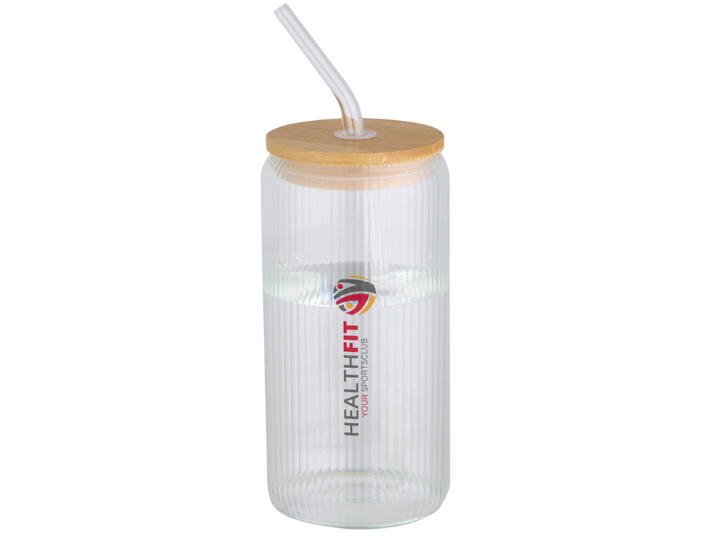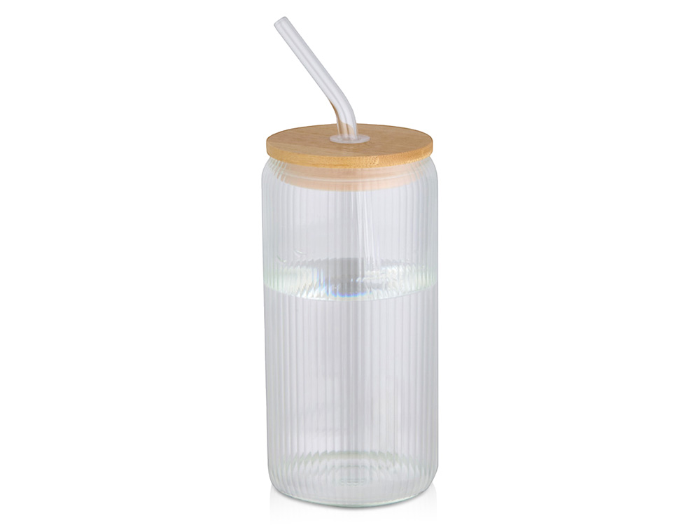 Банка из боросиликатного стекла со стеклянной трубочкой и бамбуковой крышкой. Банка имеет уникальный ребристый дизайн внутри и гладкую внешнюю поверхность, идеально подходящую для печати логотипа. Используемый бамбук выращивается в экологически чистых условиях с соблюдением принципов экологической и социальной ответственности. Поставляется в подарочной коробке из переработанного картона. Объем: 650 мл. 90% Боросиликатное стекло, 10% Бамбук с сертификатом FSC. упаковка FSC Mix 100% P5 CU-COC-877277. FSC Mix Credit N5 CU-COC-877277.