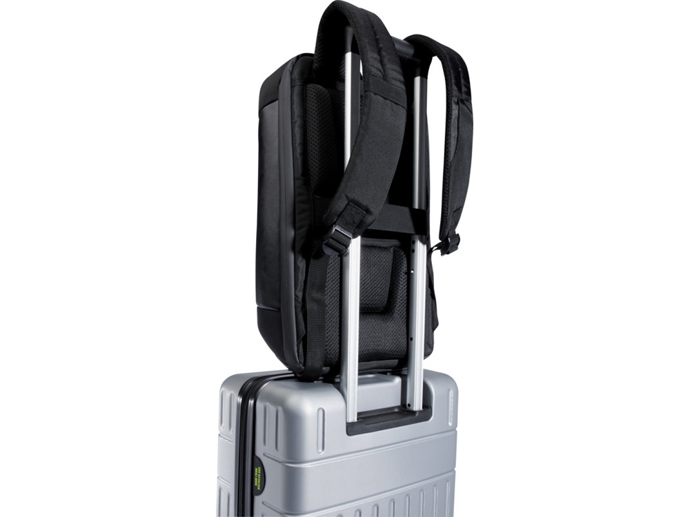 Изящный, компактный и прочный рюкзак для ноутбука Expedition Pro, сертифицированный по стандарту GRS, станет идеальным спутником для профессионалов, которые всегда в пути. Он изготовлен из водоотталкивающего переработанного PET-пластика 900D в сочетании с элементами из полиуретана премиум-класса и подкладкой из переработанного PET-пластика. Он имеет специальное отделение для ноутбука с диагональю 15,6 дюйма, отделение для планшета, несколько карманов-органайзеров, передний карман на молнии и потайной карман прямо под багажным ремнем на спине. Модель имеет мягкие регулируемые лямки, встроенный карман для карточек, петлю для солнцезащитных очков, формованную подкладку из воздушной сетки, а также мягкую ручку, обеспечивающую максимальный комфорт и удобство при переноске. Объем: 12 литр. Не содержит ПВХ. 900DGRS certified recycled polyester.