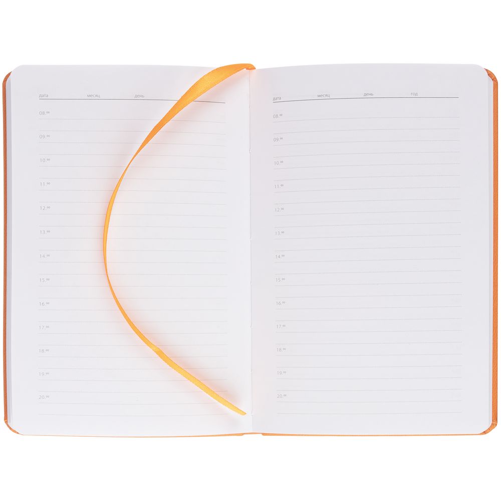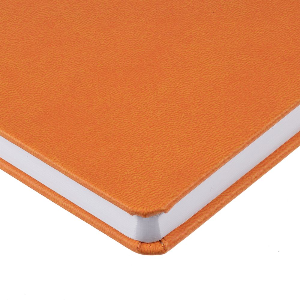 Ежедневник с твердой обложкой, выполнен из материала Latte, оранжевый ОО, дополнен  ляссе в цвет обложки.