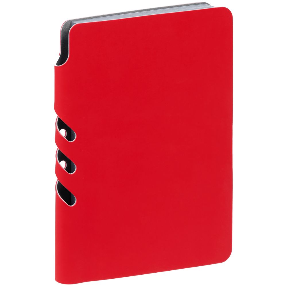 Ежедневник с гибкой обложкой выполнен из материала Soft Touch Ultra, красный РР и серого Latte (внутренняя часть обложки).