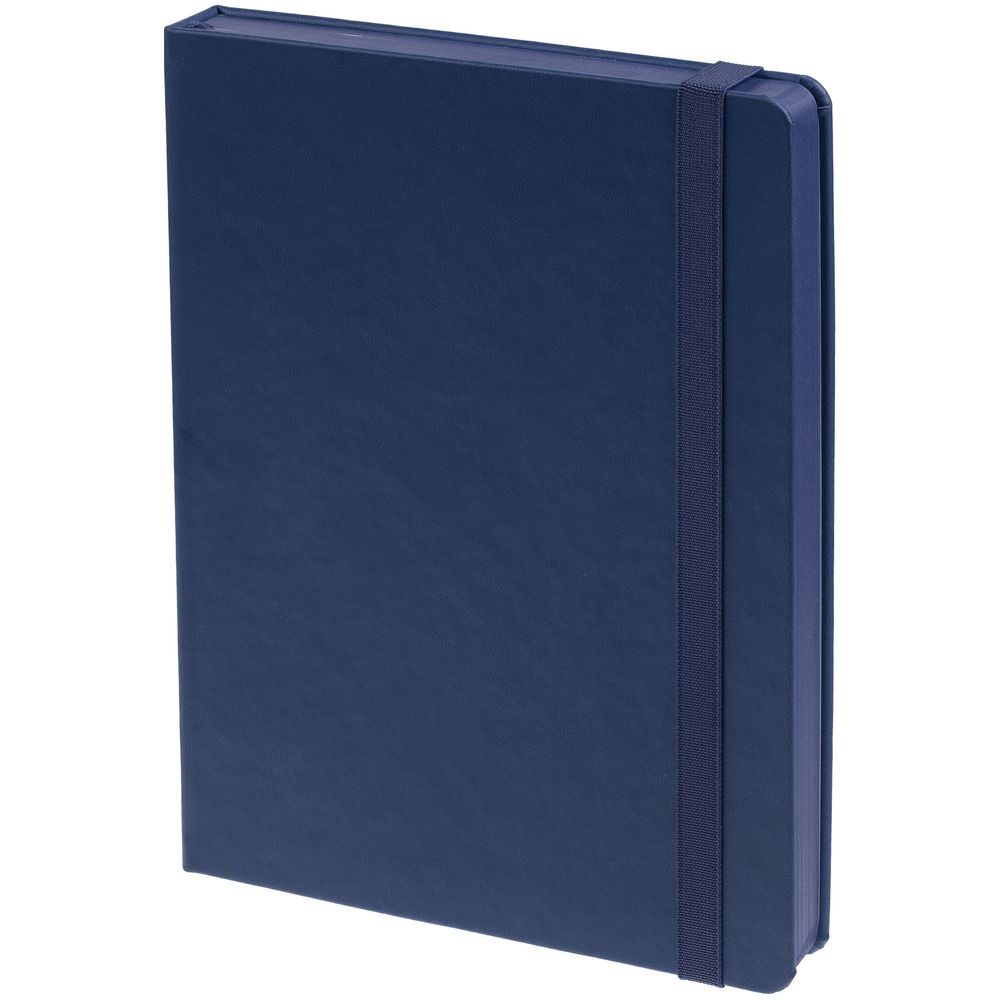 Ежедневник с твердой обложкой, выполнен из материала Latte, темно-синий ХХ, обрез темно-синего цвета, дополнен резинкой и ляссе темно-синего цвета.