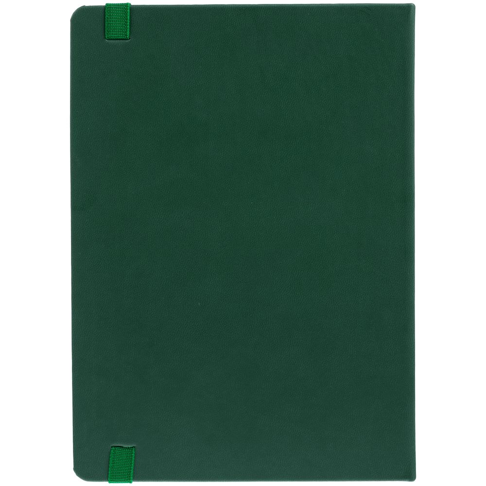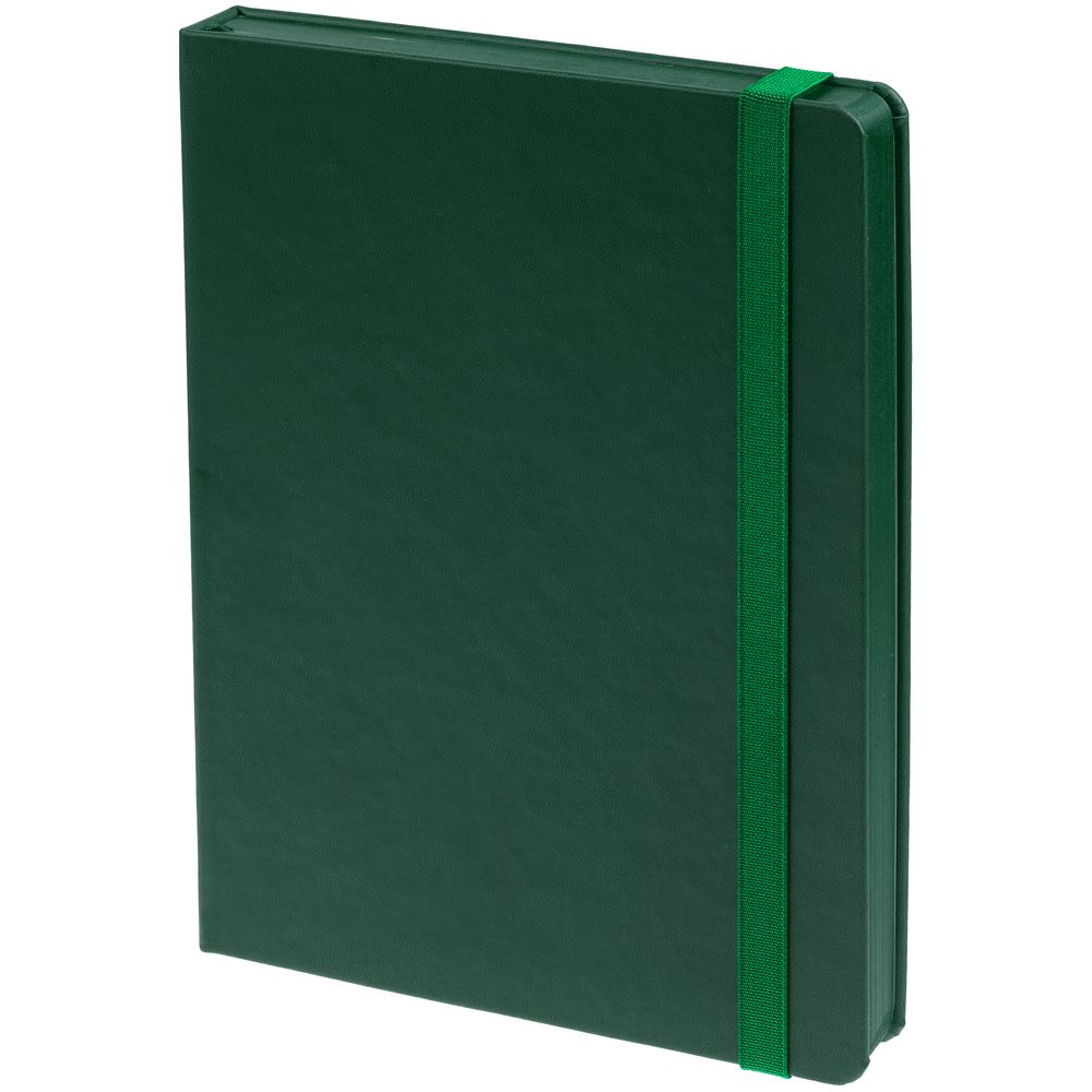 Ежедневник с твердой обложкой, выполнен из материала Latte, зеленый FF, обрез зеленого цвета, дополнен резинкой и ляссе зеленого цвета.