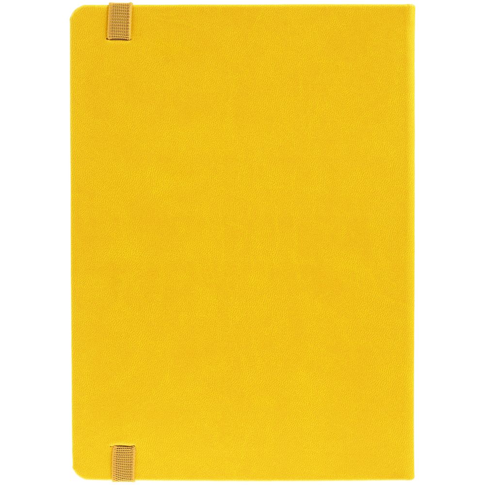 Ежедневник с твердой обложкой, выполнен из материала Latte, желтый КК, обрез зеленого цвета, дополнен резинкой и ляссе желтого цвета.