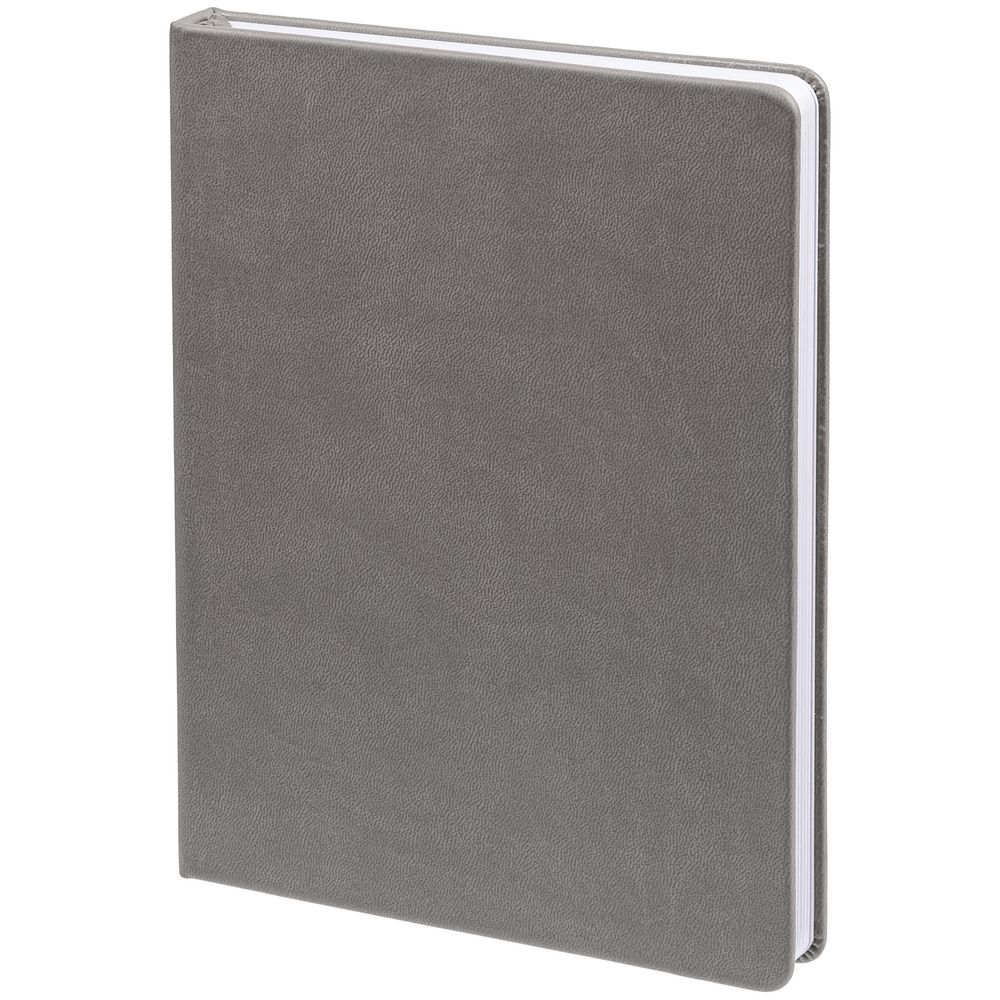 Ежедневник с твердой обложкой. Выполнен из материала Latte, серый СС, дополнен ляссе в цвет обложки.