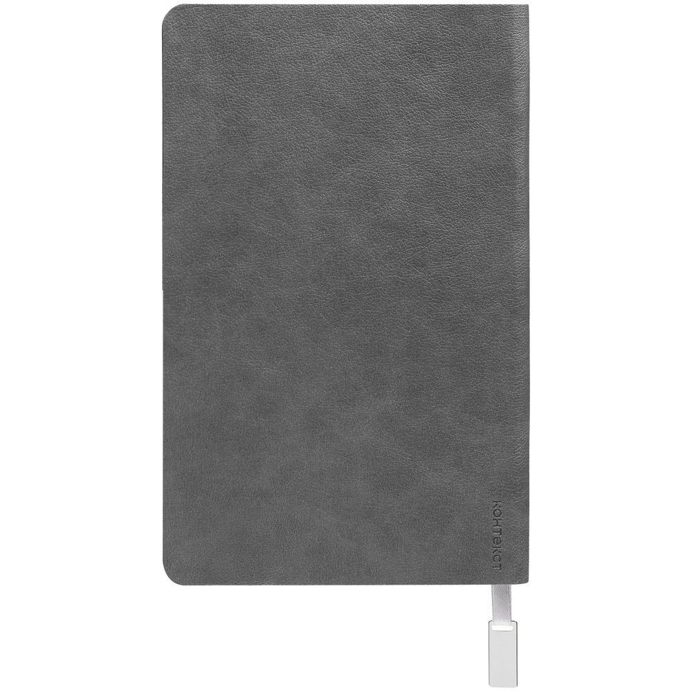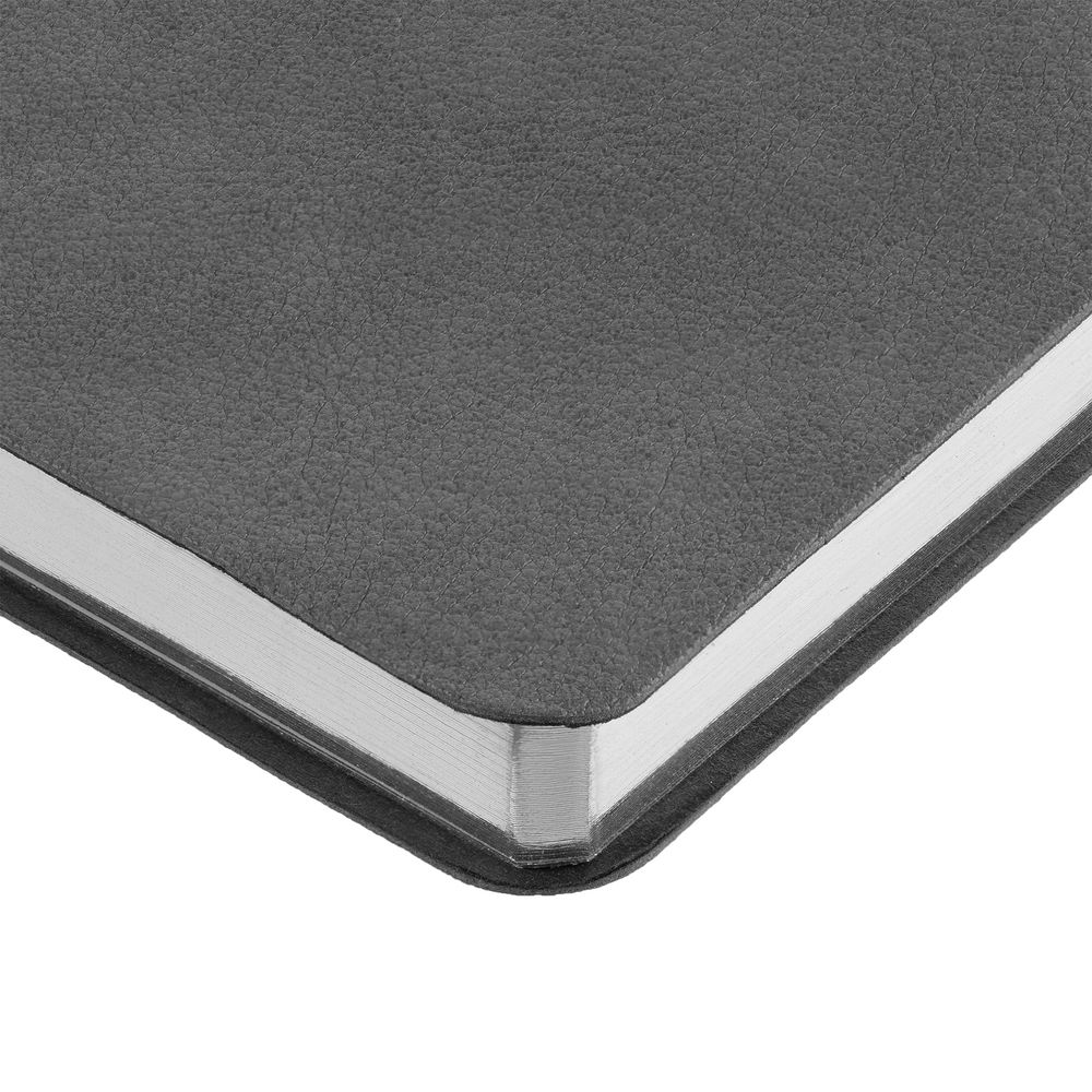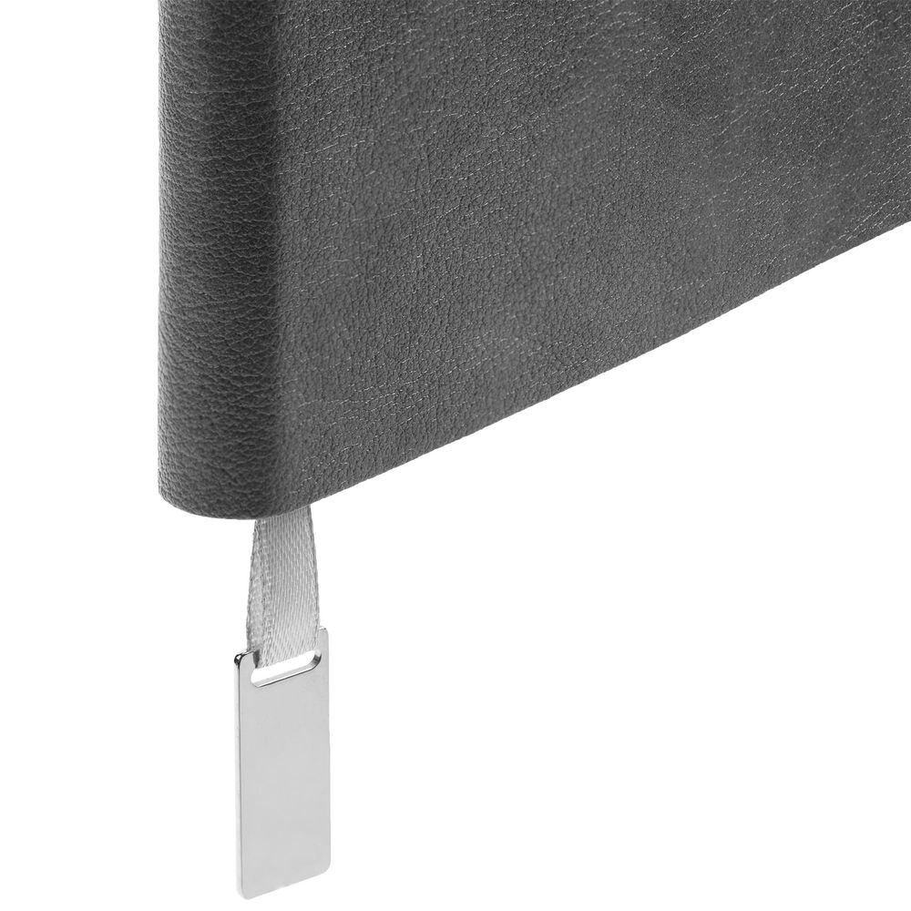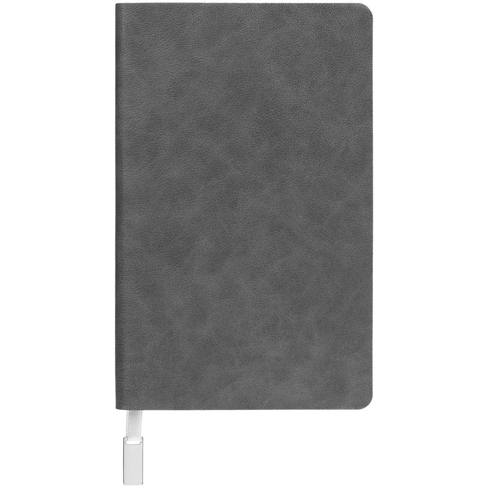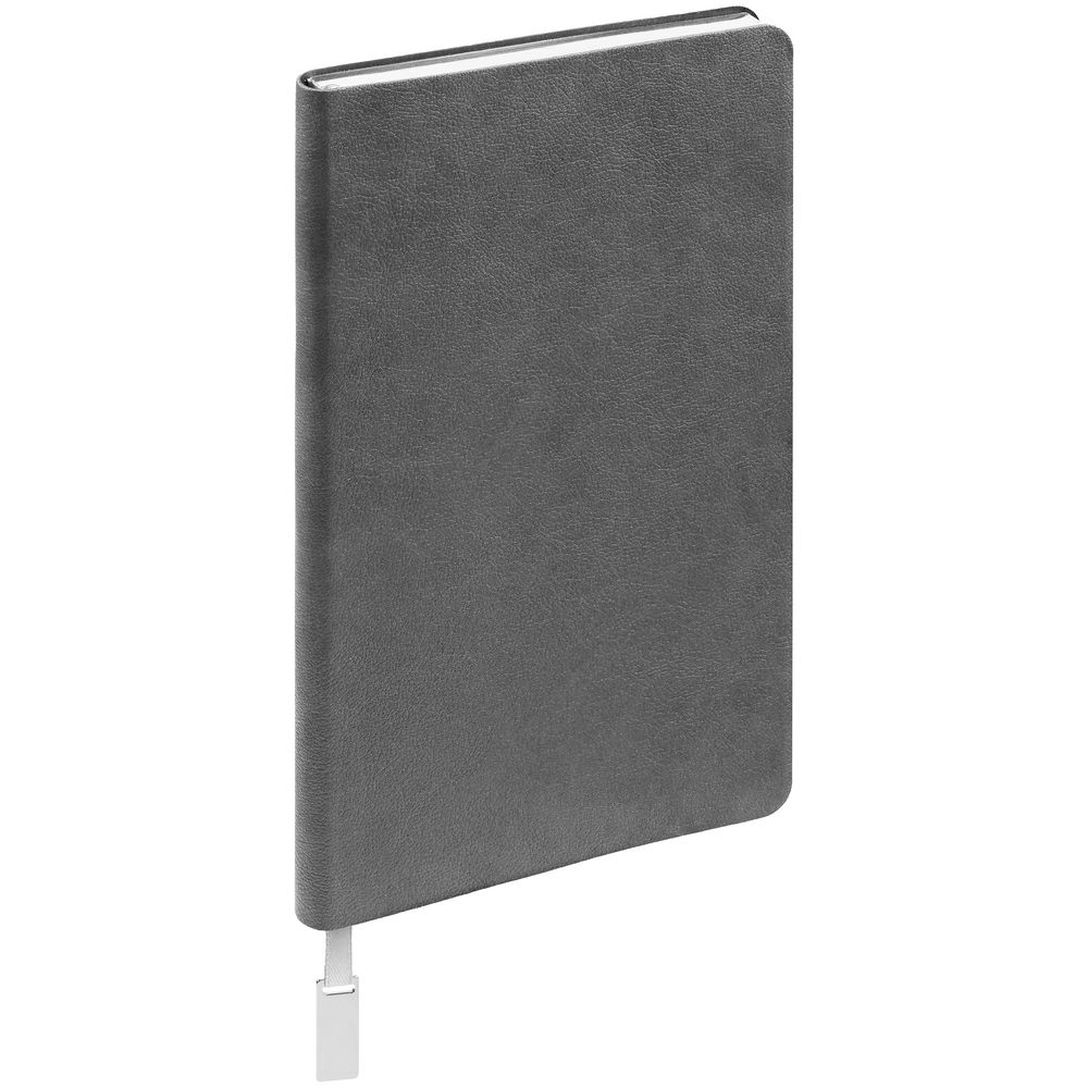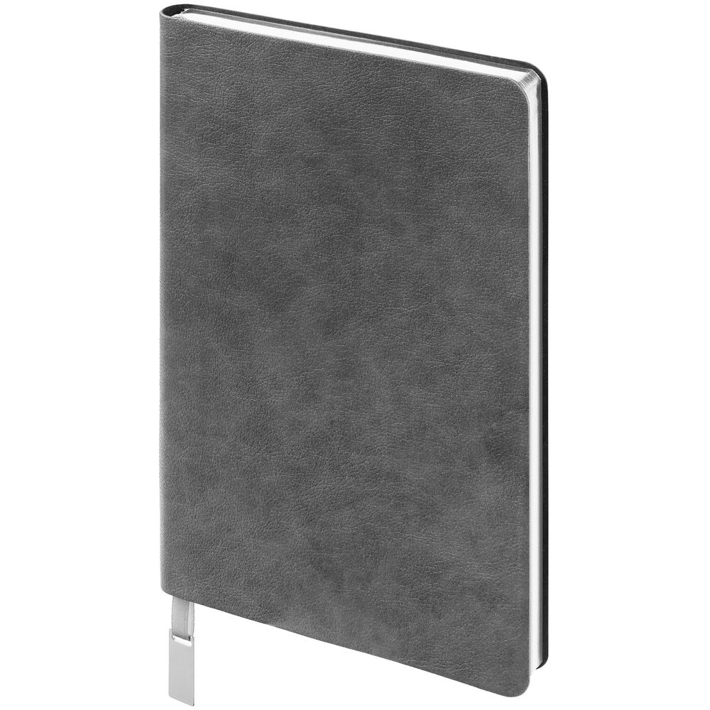 Ежедневник с гибкой обложкой, выполнен из материала Petrus, серый СС, дополнен серым ляссе с металлическим шильдиком.